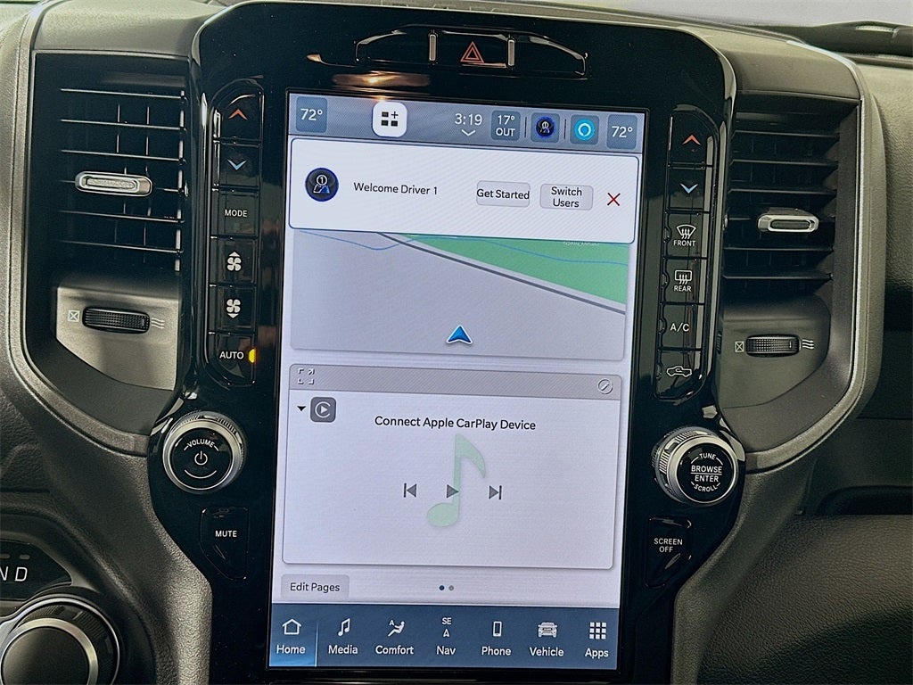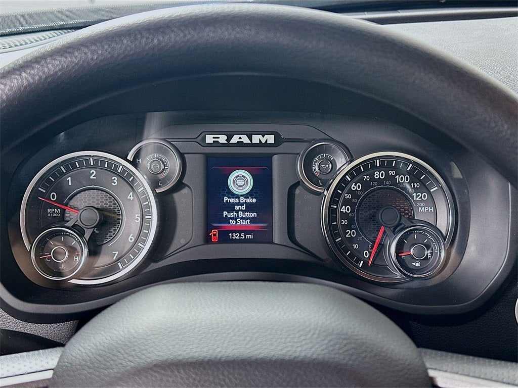 12 Touchscreen Display, 17 x 7.5 Steel Styled Wheels, 2-Way Front Head Restraints, 3.73 Axle Ratio, 4 Speakers, 4 Way Front Headrests, 4-Wheel Disc Brakes, 40/20/40 Split Bench Seat, 4G LTE Wi-Fi Hot Spot, 5th Wheel/Gooseneck Towing Prep Group, 6 Speakers, ABS brakes, Air Cond ATC w/Dual Zone Control, Air Conditioning, Alexa Built-In, All R1 High Radios, All Radio Equipped Vehicles, AM/FM radio, Apple CarPlay, Auto-Dimming Rear-View Mirror, Black Exterior Mirrors, Brake assist, Bright Front Bumper, Bright Rear Bumper, Carpet Floor Covering, Center Hub, Chrome Appearance Group, Chrome Grille Surround, Chrome Headlamp Bezels, Clearance Lamps, Cloth 40/20/40 Bench Seat, Compass, Connected Travel & Traffic Services, Connectivity - US/Canada, Convenience Group, Delay-off headlights, Disassociated Touchscreen Display, Driver door bin, Dual front impact airbags, Dual front side impact airbags, Electronic Stability Control, Electronically Controlled Throttle, Emergency communication system: SiriusXM Guardian, Exterior Mirrors Courtesy Lamps, Exterior Mirrors w/Heating Element, Exterior Mirrors w/Supplemental Signals, For Details, Visit DriveUconnect.com, For More Info, Call 800-643-2112, Front 1-Touch Down Power Windows, Front anti-roll bar, Front Armrest w/Cupholders, Front Center Armrest w/Storage, Front Floor Mats, Front License Plate Bracket, Front reading lights, Fully automatic headlights, Global Telematics Box Module (TBM), Google Android Auto, GPS Antenna Input, GPS Navigation, HD Radio, Heavy Duty Vinyl 40/20/40 Split Bench Seat, I/P Mounted Auxiliary Switches, Illuminated entry, Integrated Voice Command w/Bluetooth®, Low tire pressure warning, Manual Adjust 4-Way Driver Seat, Manual Adjust 4-Way Front Passenger Seat, Manual Folding Exterior Mirrors, Manual Telescoping Mirrors, Matte Black Mesh w/Chrome Grille, Mirror Running Lights, Mopar Black Tubular Side Steps, MOPAR Front Rubber Floor Mats, MOPAR Spray In Bedliner, Occupant sensing airbag, Off-Road Info Pages, Outside temperature display, Overhead airbag, Overhead Console, Overhead Cupholder Lamp, ParkView Rear Back-Up Camera, Passenger door bin, Passenger vanity mirror, Power Adjust Mirrors, Power Heated Folding Telescopic Mirrors, Power steering, Power-Adjustable Convex Aux Mirrors, Quick Order Package 2GA Tradesman, Radio data system, Radio: Uconnect 3 w/5 Display, Radio: Uconnect 5 Nav w/12.0 Display, Rear anti-roll bar, Rear Sliding Window, Rear step bumper, Rear Wheelhouse Liners, Remote Keyless Entry, Remote USB Port - Charge Only, Selectable Tire Fill Alert, SiriusXM Radio Service, SiriusXM Satellite Radio, SiriusXM w/360L, Speed control, Speed Sensitive Power Locks, Storage Tray, Tachometer, Tilt steering wheel, Tinted Acoustic Windshield Glass, Tip Start, Tow Hooks, Traction control, Tradesman Level 2 Equipment Group, Trailer Brake Control, Trailer Light Check, Trailer Tow Pages, Upgraded Door Trim Panel, Variably intermittent wipers, Voltmeter, Wheels: 18 x 8.0 Steel Chrome Clad.