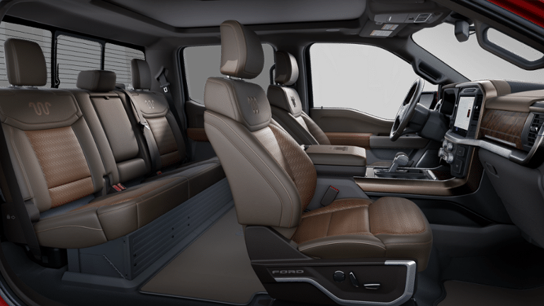 F-150 King Ranch, 4D SuperCrew, 3.5L PowerBoost Full-Hybrid V6, 10-Speed Automatic, 4WD, Rapid Red Metallic Tinted Clearcoat, Java w/King Ranch Multicontour Leather Bucket Seats, Equipment Group 601A High, Wheels: 20 Chrome-Like PVD.
