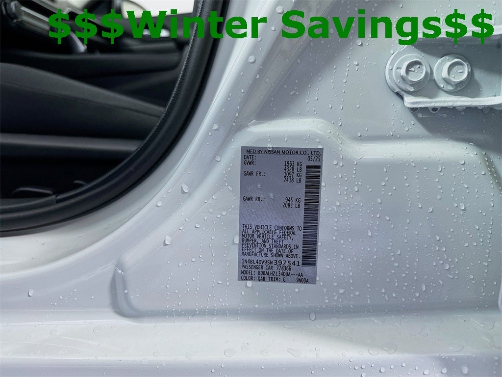 27/39 City/Highway MPG Altima 2.5 SV, 4D Sedan, 2.5L 4-Cylinder DOHC 16V, FWD, Pearl White Tricoat, Charcoal Cloth, 17 Machined Alloy Wheels, AM/FM radio: SiriusXM, Auto High-beam Headlights, Blind Spot Warning, Clear Bumper Protector, Floor Mats/Trunk Mat/Hideaway Net, Four wheel independent suspension, NissanConnect featuring Apple CarPlay and Android Auto, Power driver seat, Power windows, Premium Paint, Rear Parking Sensors, Remote Engine Start w/Intelligent Climate Control, Remote keyless entry, Speed-sensing steering, Speed-Sensitive Wipers, Trunk Organizer Tray, 4-Wheel Disc Brakes, 6 Speakers, ABS brakes, Active Cruise Control, Air Conditioning, Alloy wheels, Brake assist, Bumpers: body-color, Cloth Seat Trim, Delay-off headlights, Driver door bin, Driver vanity mirror, Dual front impact airbags, Dual front side impact airbags, Electronic Stability Control, Front anti-roll bar, Front Bucket Seats, Front Center Armrest, Front reading lights, Fully automatic headlights, Illuminated entry, Intelligent Lane Intervention (I-LI), Knee airbag, Low tire pressure warning, Occupant sensing airbag, Outside temperature display, Overhead airbag, Overhead console, Panic alarm, Passenger door bin, Passenger vanity mirror, Power door mirrors, Power steering, Radio data system, Radio: AM/FM Audio System, Rear anti-roll bar, Rear reading lights, Rear seat center armrest, Rear side impact airbag, Rear window defroster, Security system, Speed control, Split folding rear seat, Steering wheel mounted audio controls, Tachometer, Telescoping steering wheel, Tilt steering wheel, Traction control, Trip computer, Variably intermittent wipers, Altima 2.5 SV, 4D Sedan, 2.5L 4-Cylinder DOHC 16V, FWD, Pearl White Tricoat, Charcoal Cloth, 17 Machined Alloy Wheels, AM/FM radio: SiriusXM, Auto High-beam Headlights, Blind Spot Warning, Clear Bumper Protector, Floor Mats/Trunk Mat/Hideaway Net, Four wheel independent suspension, NissanConnect featuring Apple CarPlay and Android Auto, Power driver seat, Power windows, Premium Paint, Rear Parking Sensors, Remote Engine Start w/Intelligent Climate Control, Remote keyless entry, Speed-sensing steering, Speed-Sensitive Wipers, Trunk Organizer Tray.
