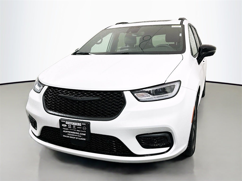 19/28 City/Highway MPG Pacifica Limited, 4D Passenger Van, 3.6L V6 24V VVT, 9-Speed 948TE Automatic, FWD, Bright White Clearcoat, Black Leather, 13 Speakers, 360 Surround View Camera System, Anodized Ink Badging, Apple CarPlay/Android Auto, Audio memory, Auto-dimming Rear-View mirror, Automatic temperature control, Black Day Light Opening Moldings, Black Stow 'N Place Roof Rack, Delay-off headlights, Driver's Seat Mounted Armrest, Electronic Stability Control, Four wheel independent suspension, Front Bucket Seats, Front dual zone A/C, Front fog lights, Fully automatic headlights, Garage door transmitter, Gloss Black Exterior Mirrors, Heated front seats, Heated rear seats, Heated steering wheel, Illuminated entry, Integrated Active Noise Cancellation, Memory seat, Nappa Leather Bucket Seats with S Logo, Outside temperature display, ParkSense Front/Rear Park Assist with Stop, ParkView Rear Back-Up Camera, Power driver seat, Power Liftgate, Power moonroof, Power passenger seat, Power windows, Premium Fascia Upper/Lower Grille with Black Surround, Premium Rear Fascia Black, Quick Order Package 27P, Radio: Uconnect 5 Nav with 10.1 Display, Rain sensing wipers, Rear window defroster, Rear window wiper, Remote keyless entry, S Appearance Package, S Badge, Safety Sphere, Security system, Spoiler, Steering wheel mounted audio controls, Telescoping steering wheel, Touring Suspension, Variably intermittent wipers, Ventilated front seats, Wheels: 20 x 7.5 S-Model Aluminum Design 1, 18 x 7.5 Painted Aluminum Wheels, 3.25 Axle Ratio, 3rd row seats: split-bench, 4-Wheel Disc Brakes, ABS brakes, Air Conditioning, Alloy wheels, AM/FM radio: SiriusXM 360L, Black Seats, Brake assist, Bumpers: body-color, Compass, Driver door bin, Driver vanity mirror, Dual front impact airbags, Dual front side impact airbags, Emergency communication system: Chrysler Connect, Front anti-roll bar, Front reading lights, Heated door mirrors, Knee airbag, Low tire pressure warning, Nappa Leather Bucket Seats, Navigation System, Occupant sensing airbag, Overhead airbag, Overhead console, Panic alarm, Passenger door bin, Passenger seat mounted armrest, Passenger vanity mirror, Power door mirrors, Power steering, Radio data system, Rear air conditioning, Rear reading lights, Reclining 3rd row seat, Roof rack, Speed control, Split folding rear seat, Tachometer, Tilt steering wheel, Traction control, Trip computer, Turn signal indicator mirrors, Voltmeter, Pacifica Limited, 4D Passenger Van, 3.6L V6 24V VVT, 9-Speed 948TE Automatic, FWD, Bright White Clearcoat, Black Leather, 13 Speakers, 360 Surround View Camera System, Anodized Ink Badging, Apple CarPlay/Android Auto, Audio memory, Auto-dimming Rear-View mirror, Automatic temperature control, Black Day Light Opening Moldings, Black Stow 'N Place Roof Rack, Delay-off headlights, Driver's Seat Mounted Armrest, Electronic Stability Control, Four wheel independent suspension, Front Bucket Seats, Front dual zone A/C, Front fog lights, Fully automatic headlights, Garage door transmitter, Gloss Black Exterior Mirrors, Heated front seats, Heated rear seats, Heated steering wheel, Illuminated entry, Integrated Active Noise Cancellation, Memory seat, Nappa Leather Bucket Seats with S Logo, Outside temperature display, ParkSense Front/Rear Park Assist with Stop, ParkView Rear Back-Up Camera, Power driver seat, Power Liftgate, Power moonroof, Power passenger seat, Power windows, Premium Fascia Upper/Lower Grille with Black Surround, Premium Rear Fascia Black, Quick Order Package 27P, Radio: Uconnect 5 Nav with 10.1 Display, Rain sensing wipers, Rear window defroster, Rear window wiper, Remote keyless entry, S Appearance Package, S Badge, Safety Sphere, Security system, Spoiler, Steering wheel mounted audio controls, Telescoping steering wheel, Touring Suspension, Variably intermittent wipers, Ventilate