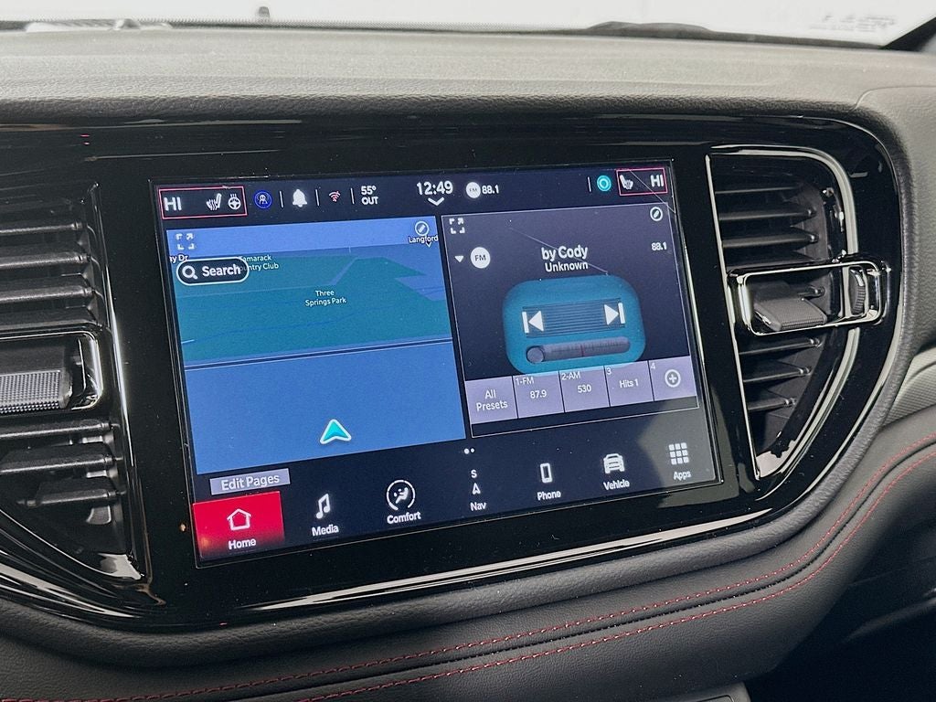 Durango GT HEMI V8, 4D Sport Utility, HEMI 5.7L V8 Multi Displacement VVT, 8-Speed Automatic, AWD, DB Black Crystal Clearcoat, 7 and 4 Pin Wiring Harness, 9 Speakers, Auto-leveling suspension, Automatic temperature control, Blind Spot with Trailer Detection, Class IV Receiver Hitch, Delay-off headlights, Four wheel independent suspension, Front dual zone A/C, Fully automatic headlights, ParkView Rear Back-Up Camera, Power driver seat, Power Liftgate, Quick Order Package 22S GT, Radio: Uconnect 5 Nav with 10.1 Display, Rear Load Leveling Suspension, Remote keyless entry, Security system, Steering wheel mounted audio controls, Trailer Brake Control, Trailer Tow Group IV, 3.09 Rear Axle Ratio, 3rd row seats: split-bench, 4-Wheel Disc Brakes, ABS brakes, Air Conditioning, Alloy wheels, AM/FM radio: SiriusXM w/360L, Apple CarPlay/Android Auto, Auto-dimming Rear-View mirror, Brake assist, Bumpers: body-color, Cloth Bucket Seats with Shift Insert, Compass, Driver door bin, Driver vanity mirror, Dual front impact airbags, Dual front side impact airbags, Electronic Stability Control, Emergency communication system: Dodge Connect, Exterior Mirrors with Heating Element, Front anti-roll bar, Front Bucket Seats, Front Center Armrest w/Storage, Front License Plate Bracket, Front reading lights, Garage door transmitter, Gloss Black Exterior Mirrors, Heated door mirrors, Heated front seats, Heated steering wheel, Illuminated entry, Knee airbag, Leather steering wheel, Low tire pressure warning, Navigation System, Occupant sensing airbag, Outside temperature display, Overhead airbag, Overhead console, Panic alarm, Passenger door bin, Passenger vanity mirror, Power door mirrors, Power steering, Power windows, Radio data system, Rain sensing wipers, Rear air conditioning, Rear anti-roll bar, Rear reading lights, Rear seat center armrest, Rear window defroster, Rear window wiper, Red Accent Stitching, Speed control, Speed-sensing steering, Speed-Sensitive Wipers, Split folding rear seat, Spoiler, Sport steering wheel, Tachometer, Telescoping steering wheel, Tilt steering wheel, Traction control, Trip computer, Variably intermittent wipers, Voltmeter, Wheels: 20 x 8 Satin Carbon Split 5-Spoke, Durango GT HEMI V8, 4D Sport Utility, HEMI 5.7L V8 Multi Displacement VVT, 8-Speed Automatic, AWD, DB Black Crystal Clearcoat, 7 and 4 Pin Wiring Harness, 9 Speakers, Auto-leveling suspension, Automatic temperature control, Blind Spot with Trailer Detection, Class IV Receiver Hitch, Delay-off headlights, Four wheel independent suspension, Front dual zone A/C, Fully automatic headlights, ParkView Rear Back-Up Camera, Power driver seat, Power Liftgate, Quick Order Package 22S GT, Radio: Uconnect 5 Nav with 10.1 Display, Rear Load Leveling Suspension, Remote keyless entry, Security system, Steering wheel mounted audio controls, Trailer Brake Control, Trailer Tow Group IV. We do things differently at Auffenberg CDJR. Every vehicle is priced to sell and backed by our Auffenberg Honestly Policy. Located at Auffenberg CDJR 1108 Auffenberg Ave. Shiloh, IL.
