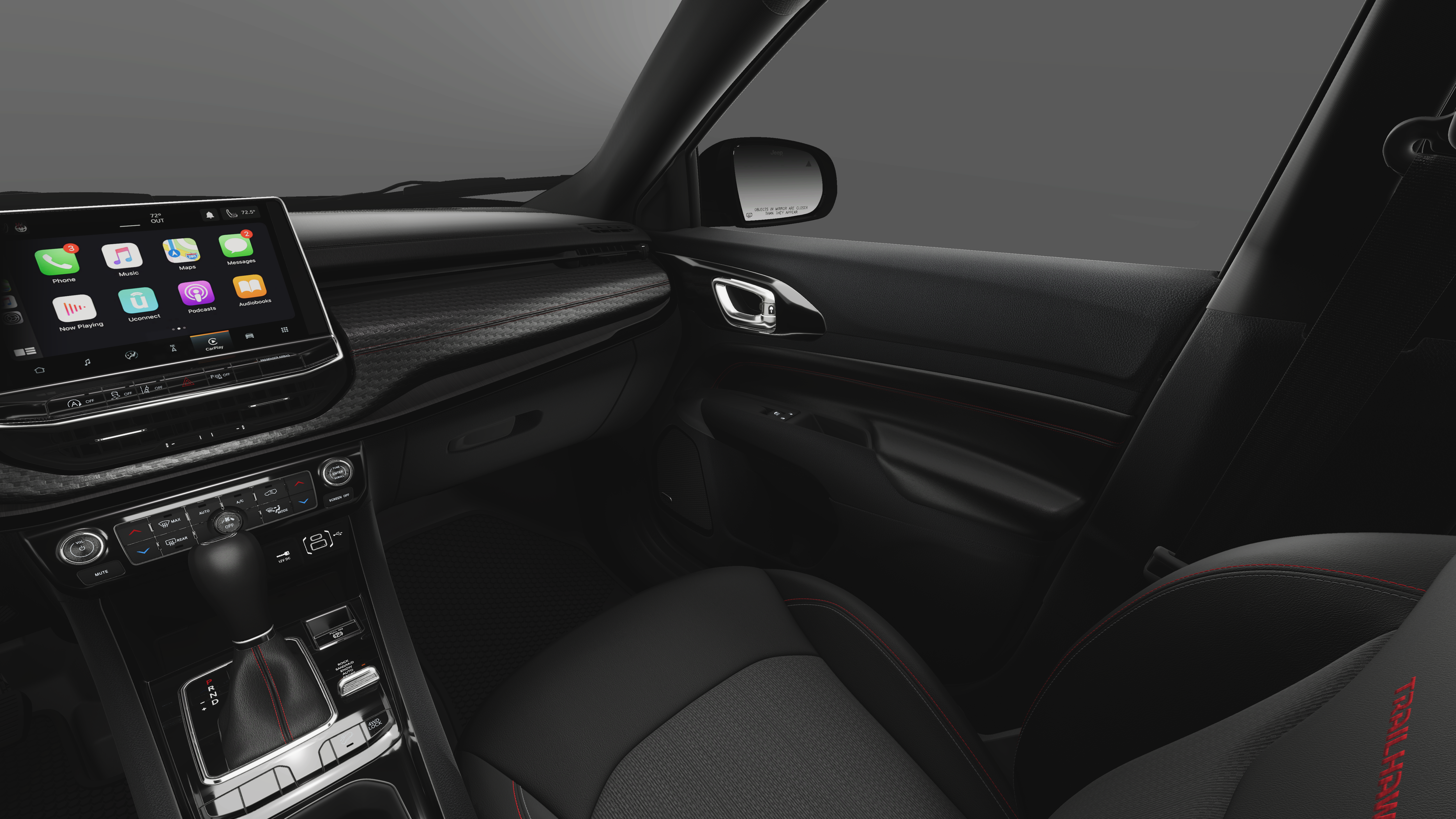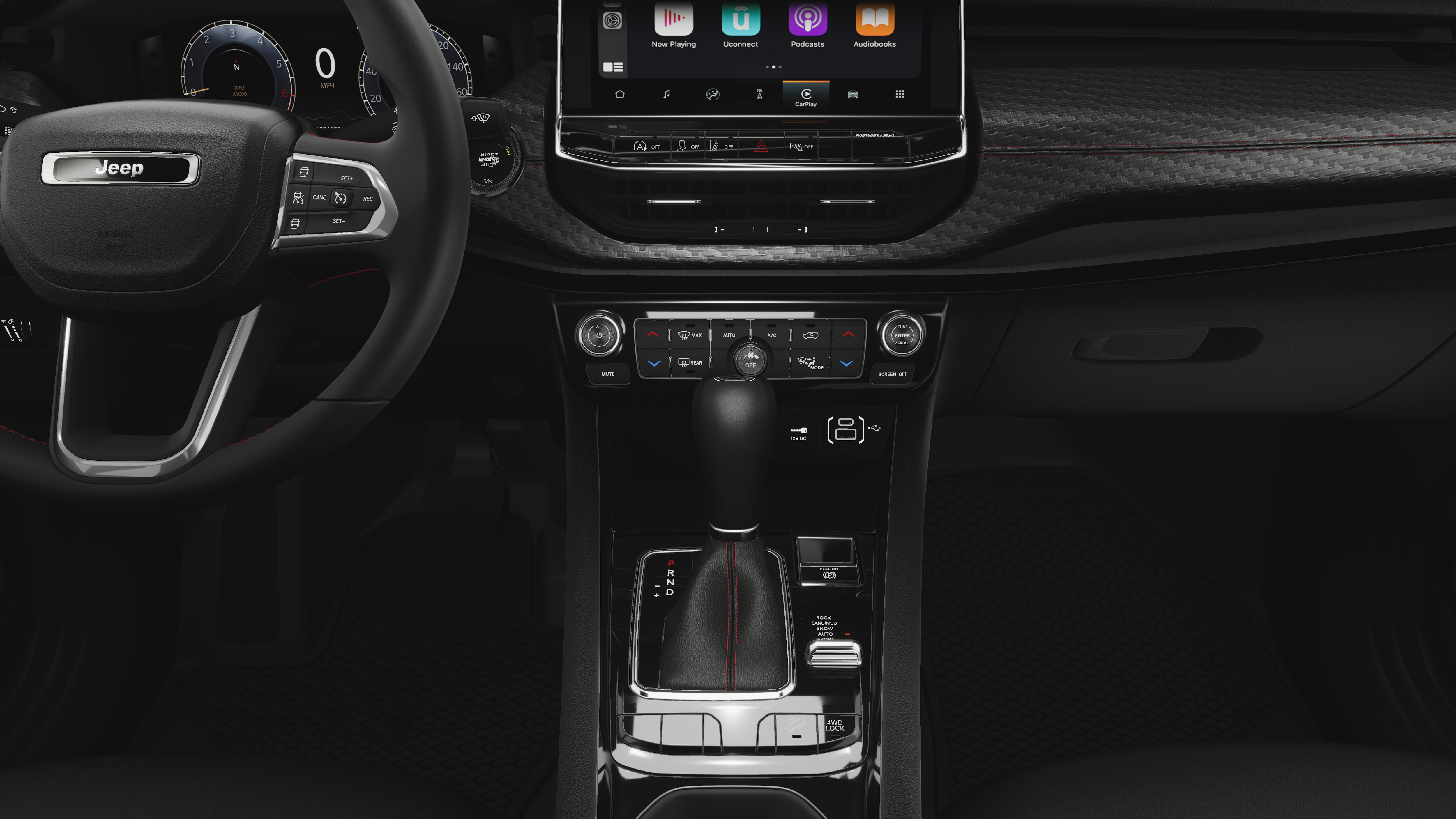 23/31 City/Highway MPG 4WD, 10.1 Touchscreen Display, 4-Wheel Disc Brakes, 4.398 Final Drive Ratio, 4G LTE Wi-Fi Hot Spot, 6 Speakers, ABS brakes, Air Conditioning, Alexa Built-In, Alloy wheels, AM/FM radio: SiriusXM, Auto High-beam Headlights, Auto-dimming Rear-View mirror, Automatic temperature control, Brake assist, Bumpers: body-color, Cluster 10.25 TFT Color Display, Compass, Connected Travel and Traffic Services, Delay-off headlights, Driver door bin, Driver vanity mirror, Dual front impact airbags, Dual front side impact airbags, Electronic Stability Control, Emergency communication system: SiriusXM Guardian, Four wheel independent suspension, Front anti-roll bar, Front Bucket Seats, Front Center Armrest w/Storage, Front dual zone A/C, Front fog lights, Front License Plate Bracket, Front reading lights, Fully automatic headlights, Global Telematics Box Module, GPS Navigation, HD Radio, Heated door mirrors, Heated front seats, Heated steering wheel, Illuminated entry, Integrated Voice Command with Bluetooth®, Knee airbag, Leather Shift Knob, Leather steering wheel, Low tire pressure warning, Occupant sensing airbag, Outside temperature display, Overhead airbag, Overhead console, Panic alarm, ParkView Rear Back-Up Camera, Passenger door bin, Passenger vanity mirror, Power door mirrors, Power driver seat, Power Front/Fixed Rear Full Sunroof, Power Liftgate, Power steering, Power windows, Premium Alpine Speaker System, Premium audio system: UConnect 5, Premium Cloth/Leather Trim Bucket Seats, Quick Order Package 29E, Radio: Uconnect 5 with 10.1 Display, Rain sensing wipers, Rear anti-roll bar, Rear seat center armrest, Rear window defroster, Rear window wiper, Remote keyless entry, Security system, SiriusXM Guardian - Included Trail (B), SiriusXM Radio Service, SiriusXM with 360L, Speed control, Split folding rear seat, Spoiler, Steering wheel mounted audio controls, Sun, Sound and Navigation Group, Tachometer, Telescoping steering wheel, Tilt steering wheel, Traction control, Trip computer, Turn signal indicator mirrors, Variably intermittent wipers, Wheels: 17 x 6.5 Painted Black Aluminum, 4WD.