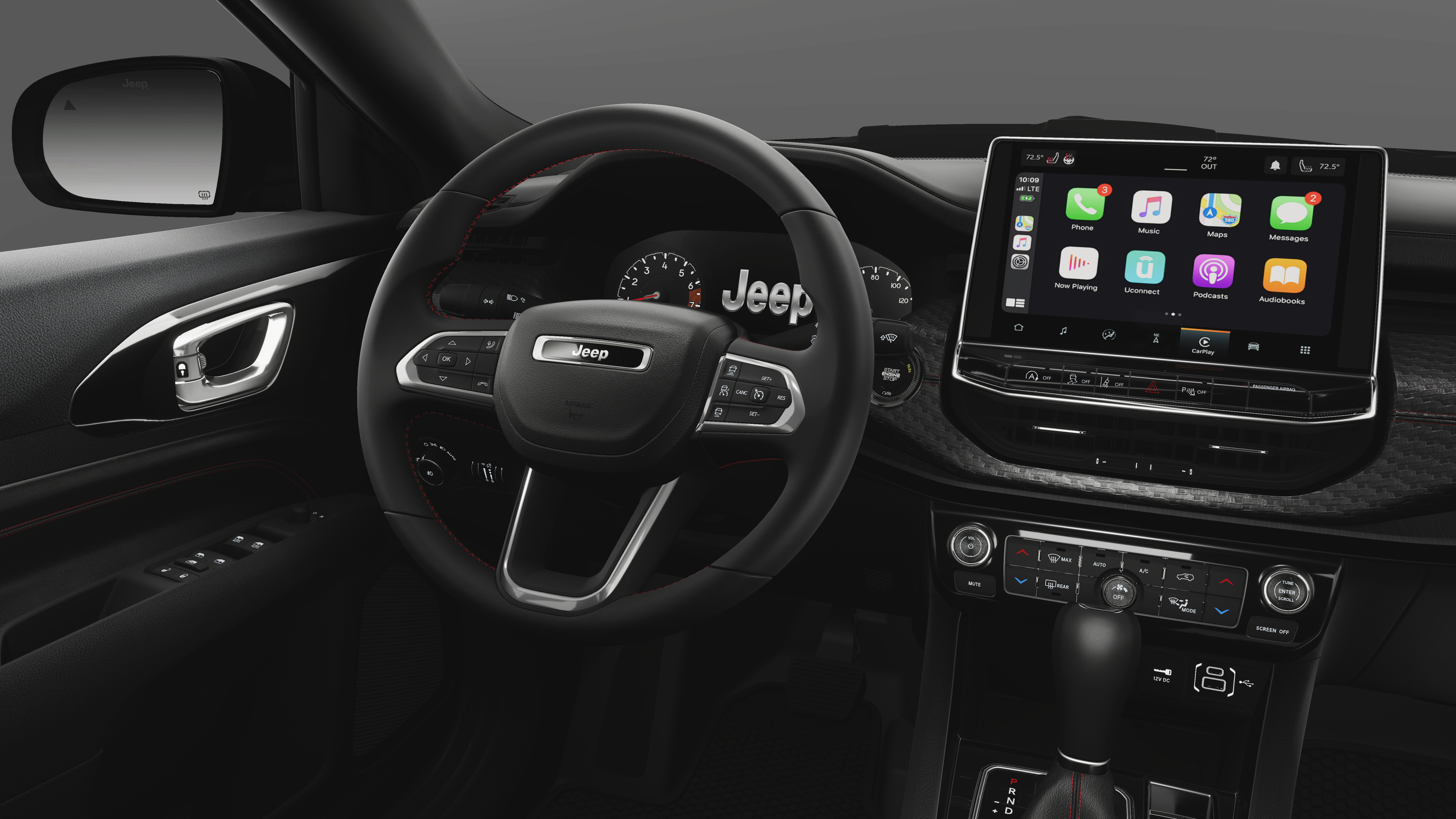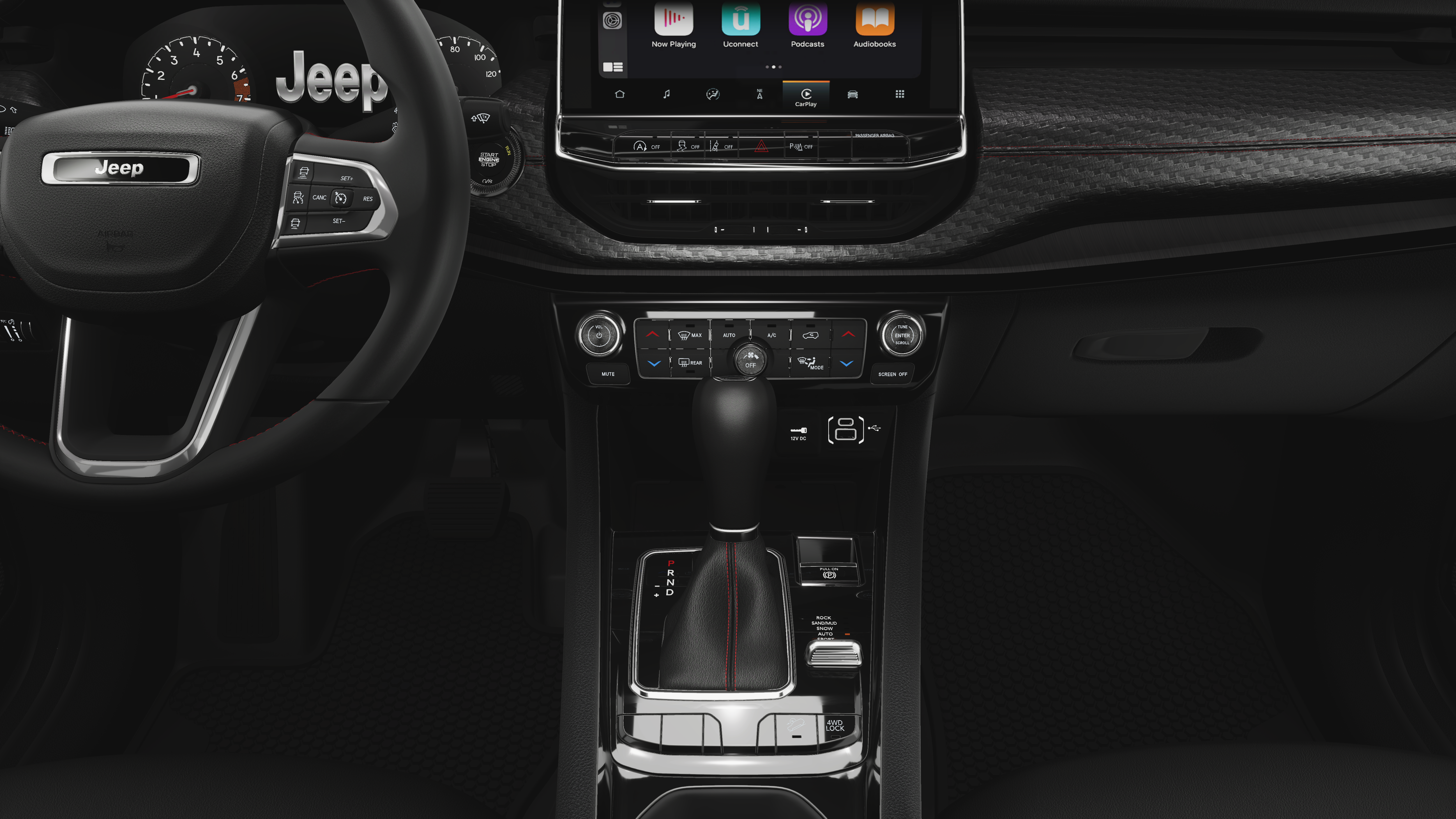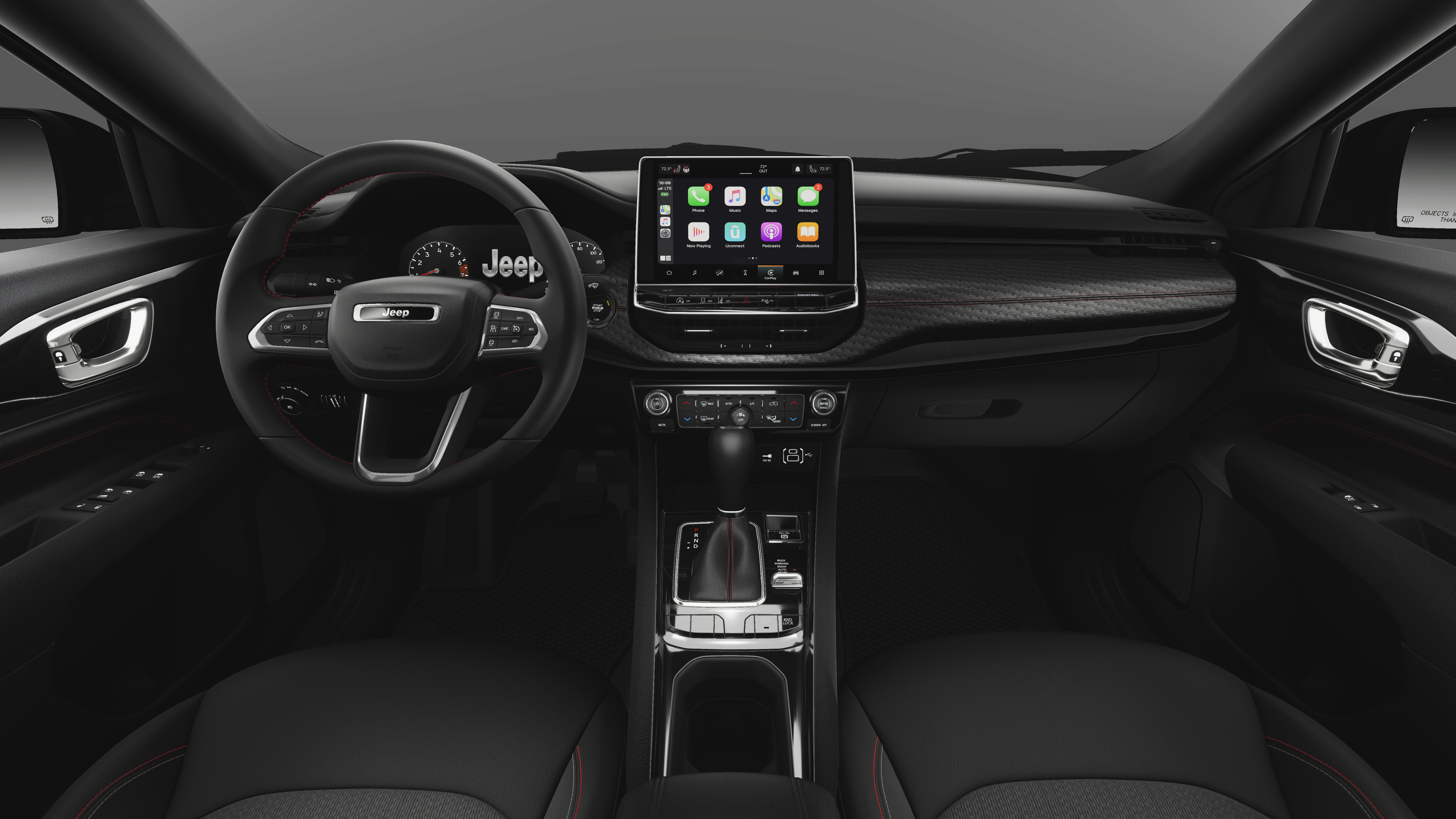 23/31 City/Highway MPG 4WD, 10.1 Touchscreen Display, 4-Wheel Disc Brakes, 4.398 Final Drive Ratio, 4G LTE Wi-Fi Hot Spot, 6 Speakers, ABS brakes, Air Conditioning, Alloy wheels, AM/FM radio: SiriusXM, Auto High-beam Headlights, Auto-dimming Rear-View mirror, Automatic temperature control, Brake assist, Bumpers: body-color, Compass, Delay-off headlights, Driver door bin, Driver vanity mirror, Dual front impact airbags, Dual front side impact airbags, Electronic Stability Control, Emergency communication system: SiriusXM Guardian, Four wheel independent suspension, Front anti-roll bar, Front Bucket Seats, Front Center Armrest w/Storage, Front dual zone A/C, Front fog lights, Front License Plate Bracket, Front reading lights, Fully automatic headlights, Global Telematics Box Module, Heated door mirrors, Heated front seats, Heated steering wheel, Illuminated entry, Knee airbag, Leather Shift Knob, Leather steering wheel, Low tire pressure warning, Occupant sensing airbag, Outside temperature display, Overhead airbag, Overhead console, Panic alarm, ParkView Rear Back-Up Camera, Passenger door bin, Passenger vanity mirror, Power door mirrors, Power driver seat, Power Liftgate, Power steering, Power windows, Premium audio system: UConnect 5, Premium Cloth/Leather Trim Bucket Seats, Quick Order Package 29E, Radio: Uconnect 5 with 10.1 Display, Rain sensing wipers, Rear anti-roll bar, Rear seat center armrest, Rear window defroster, Rear window wiper, Remote keyless entry, Security system, SiriusXM Guardian - Included Trail (B), SiriusXM Radio Service, Speed control, Split folding rear seat, Spoiler, Steering wheel mounted audio controls, Tachometer, Telescoping steering wheel, Tilt steering wheel, Traction control, Trip computer, Turn signal indicator mirrors, Variably intermittent wipers, Wheels: 17 x 6.5 Painted Black Aluminum, 4WD.