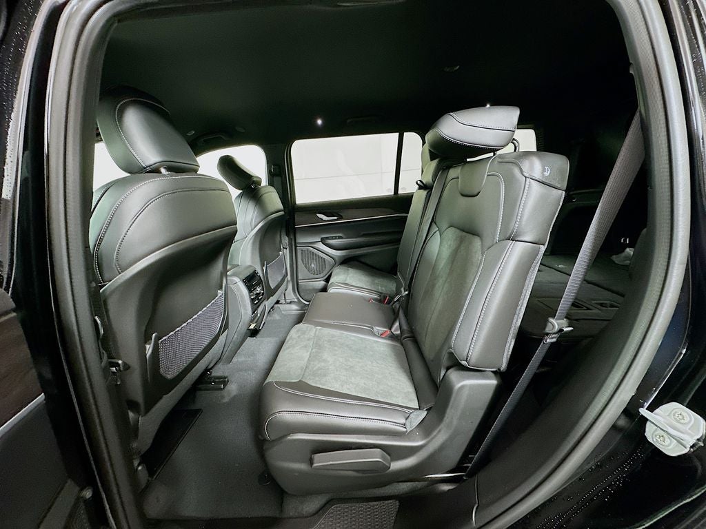 Grand Cherokee L Laredo, 4D Sport Utility, 2.0L V6 SMPI Turbocharged DOHC 24V LEV3-SULEV30 293hp, 8-Speed Automatic, 4WD, Diamond Black Crystal Pearlcoat, Global Black Artificial Leather, 115V Auxiliary Power Outlet, 12.3 Touchscreen Display, 240 Amp Alternator, 2nd Row 60/40 Bench with Manual Tip/Slide, 2nd Row Seat Center Armrest/Cupholders, 3 Rear Seat Head Restraints, 3.70 Rear Axle Ratio, 3rd Row Charge-Only USB Ports, 4G LTE Wi-Fi Hot Spot, 7-Passenger Seating, Active Driving Assist System, Active Noise Control System, an-Teak/Satin Chrome Interior Accents, Apple CarPlay, AppLink/Apple CarPlay and Android Auto, Automatic temperature control, Black Headliner, Body Color Door Handles (B), Capri Leatherette/Suede Seats, Center Rear 3-Point Seat Belt, Connected Travel and Traffic Services, Connectivity - US/Canada, Delete Laredo Badge, Disassociated Touchscreen Display, Dual Exhaust Tips, Exterior Accents Dark Neutral Metallic, For Details, Visit DriveUconnect.com, Four wheel independent suspension, Front dual zone A/C, Front Fascia Upper A, Fully automatic headlights, Global Telematics Box Module (TBM), Google Android Auto, GPS Antenna Input, GPS Navigation, HD Radio, Heated Front Seats, Heated Steering Wheel, Heavy-Duty Engine Cooling, Integrated Center Stack Radio, Integrated Voice Command with Bluetooth®, Intersection Collision Assist System, Laredo Altitude Appearance Package, Manual Fold Seatbacks, Outside temperature display, ParkView Rear Back-Up Camera, Power driver seat, Power Liftgate, Quick Order Package 2BB Laredo Altitude, Radio: Uconnect 5 Nav with 12.3 Display, Rain Sensitive Windshield Wipers, Rear Fascia Upper A, Remote keyless entry, Remote Start System, Secondary Active Grille Shutters, Security system, Selec-Terrain System, Selectable Tire Fill Alert, SiriusXM with 360L, Steering wheel mounted audio controls, Traffic Sign Recognition, USB Host Flip, Wheels: 18 x 8.0 Fully Painted Aluminum 1, Wireless Charging Pad, 3rd row seats: split-bench, 4-Wheel Disc Brakes, 6 Speakers, ABS brakes, Air Conditioning, Alloy wheels, AM/FM radio: SiriusXM, Anti-whiplash front head restraints, Brake assist, Bumpers: body-color, Cloth Seats, Compass, Delay-off headlights, Driver door bin, Driver vanity mirror, Dual front impact airbags, Dual front side impact airbags, Electronic Stability Control, Emergency communication system, Front anti-roll bar, Front Bucket Seats, Front Center Armrest w/Storage, Front License Plate Bracket, Front reading lights, Gloss Black Exterior Mirrors, Heated door mirrors, Heated Exterior Mirrors, Illuminated entry, Knee airbag, Low tire pressure warning, Manual Folding Exterior Mirrors, Normal Duty Suspension, Occupant sensing airbag, Overhead airbag, Overhead console, Panic alarm, Passenger door bin, Passenger vanity mirror, Power door mirrors, Power Fold Seatbacks, Power steering, Power windows, Radio data system, Radio: Uconnect 5 with 8.4 Display, Rear air conditioning, Rear anti-roll bar, Rear reading lights, Rear window defroster, Rear window wiper, Reclining 3rd row seat, Speed control, Speed-Sensitive Wipers, Split folding rear seat, Spoiler, Tachometer, Telescoping steering wheel, Tilt steering wheel, Traction control, Trip computer, Variably intermittent wipers, Voltmeter, Wheels: 18 x 8.0 Fully Painted Aluminum, Grand Cherokee L Laredo, 4D Sport Utility, 2.0L V6 SMPI Turbocharged DOHC 24V LEV3-SULEV30 293hp, 8-Speed Automatic, 4WD, Diamond Black Crystal Pearlcoat, Global Black Artificial Leather, 115V Auxiliary Power Outlet, 12.3 Touchscreen Display, 240 Amp Alternator, 2nd Row 60/40 Bench with Manual Tip/Slide, 2nd Row Seat Center Armrest/Cupholders, 3 Rear Seat Head Restraints, 3.70 Rear Axle Ratio, 3rd Row Charge-Only USB Ports, 4G LTE Wi-Fi Hot Spot, 7-Passenger Seating, Active Driving Assist System, Activ