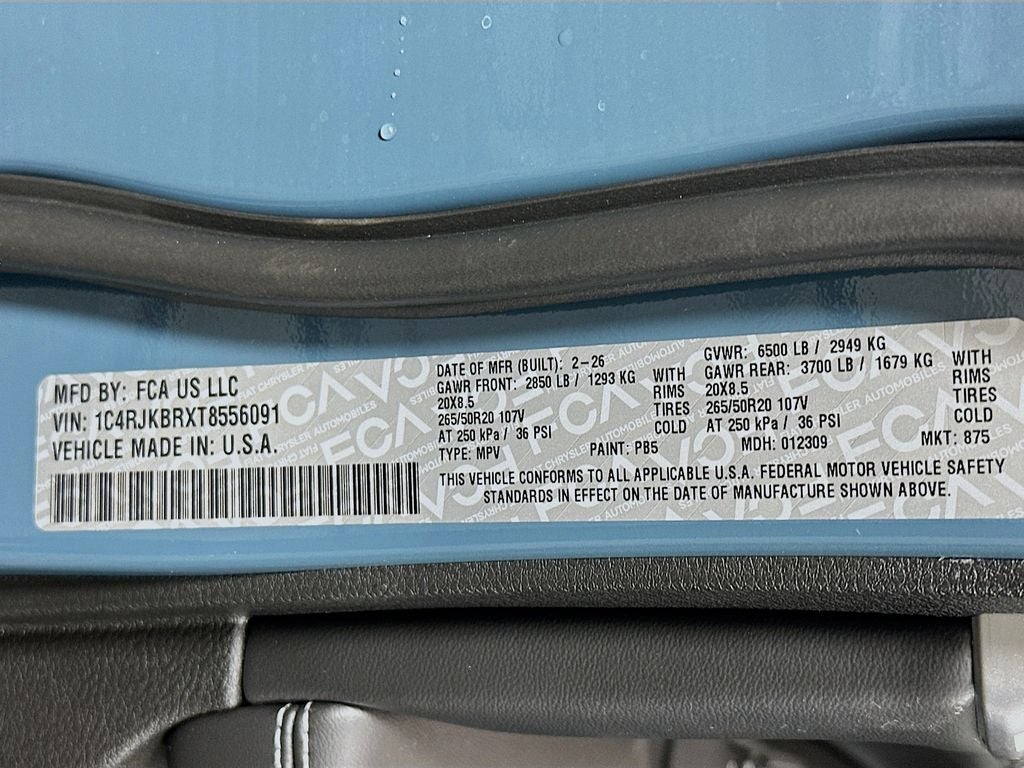 Grand Cherokee L Limited, 4D Sport Utility, 2.0L I4 PDI Turbocharged DOHC 16V LEV3-SULEV30 324hp, 8-Speed Automatic, 4WD, Steel Blue, Global Black Artificial Leather, 10 Speakers, 4G LTE Wi-Fi Hot Spot, Active Noise Control System, AppLink/Apple CarPlay and Android Auto, Audio memory, Auto High-beam Headlights, Automatic temperature control, Delay-off headlights, Delete Limited Badge, Dual-Pane Panoramic Sunroof, Electronic Stability Control, Exterior Accents Dark Neutral Metallic, Four wheel independent suspension, Front dual zone A/C, Front fog lights, Fully automatic headlights, Garage door transmitter, Heated steering wheel, Illuminated entry, Integrated Voice Command with Bluetooth®, Interior Rear Facing Camera, Limited Altitude Package, Memory seat, Outside temperature display, ParkView Rear Back-Up Camera, Power driver seat, Power Liftgate, Power passenger seat, Quick Order Package 2CE Limited, Radio data system, Radio: Uconnect 5 Nav with 12.3 Display, Rear air conditioning, Reclining 3rd row seat, Remote keyless entry, Security system, Steering wheel mounted audio controls, Telescoping steering wheel, Wheels: 20 x 8.5 Gloss Black Painted Aluminum, 3.70 Rear Axle Ratio, 3rd row seats: split-bench, 4-Wheel Disc Brakes, ABS brakes, Air Conditioning, Alloy wheels, AM/FM radio: SiriusXM with 360L, Anti-whiplash front head restraints, Apple CarPlay, Brake assist, Bumpers: body-color, Capri Leatherette Seats, Compass, Connectivity - US/Canada, Disassociated Touchscreen Display, Driver door bin, Driver vanity mirror, Dual front impact airbags, Dual front side impact airbags, Emergency communication system, For Details, Visit DriveUconnect.com, Front anti-roll bar, Front Bucket Seats, Front Center Armrest w/Storage, Front License Plate Bracket, Front reading lights, Global Telematics Box Module (TBM), Gloss Black Exterior Mirrors, Google Android Auto, GPS Antenna Input, Heated door mirrors, Heated Exterior Mirrors, Heated front seats, Heated rear seats, Integrated Center Stack Radio, Knee airbag, Low tire pressure warning, Manual Fold Seatbacks, Manual Folding Exterior Mirrors, Navigation System, Normal Duty Suspension, Occupant sensing airbag, Overhead airbag, Overhead console, Panic alarm, Passenger door bin, Passenger vanity mirror, Power door mirrors, Power Fold Seatbacks, Power steering, Power windows, Rear anti-roll bar, Rear reading lights, Rear window defroster, Rear window wiper, Speed control, Speed-Sensitive Wipers, Split folding rear seat, Spoiler, Tachometer, Tilt steering wheel, Traction control, Trip computer, Turn signal indicator mirrors, USB Host Flip, Variably intermittent wipers, Voltmeter, Wheels: 18 x 8.0 Polished/Painted Aluminum, Grand Cherokee L Limited, 4D Sport Utility, 2.0L I4 PDI Turbocharged DOHC 16V LEV3-SULEV30 324hp, 8-Speed Automatic, 4WD, Steel Blue, Global Black Artificial Leather, 10 Speakers, 4G LTE Wi-Fi Hot Spot, Active Noise Control System, AppLink/Apple CarPlay and Android Auto, Audio memory, Auto High-beam Headlights, Automatic temperature control, Delay-off headlights, Delete Limited Badge, Dual-Pane Panoramic Sunroof, Electronic Stability Control, Exterior Accents Dark Neutral Metallic, Four wheel independent suspension, Front dual zone A/C, Front fog lights, Fully automatic headlights, Garage door transmitter, Heated steering wheel, Illuminated entry, Integrated Voice Command with Bluetooth®, Interior Rear Facing Camera, Limited Altitude Package, Memory seat, Outside temperature display, ParkView Rear Back-Up Camera, Power driver seat, Power Liftgate, Power passenger seat, Quick Order Package 2CE Limited, Radio data system, Radio: Uconnect 5 Nav with 12.3 Display, Rear air conditioning, Reclining 3rd row seat, Remote keyless entry, Security system, Steering wheel mounted audio controls, Telescoping steering wheel, Wheels: 20 x 8.5