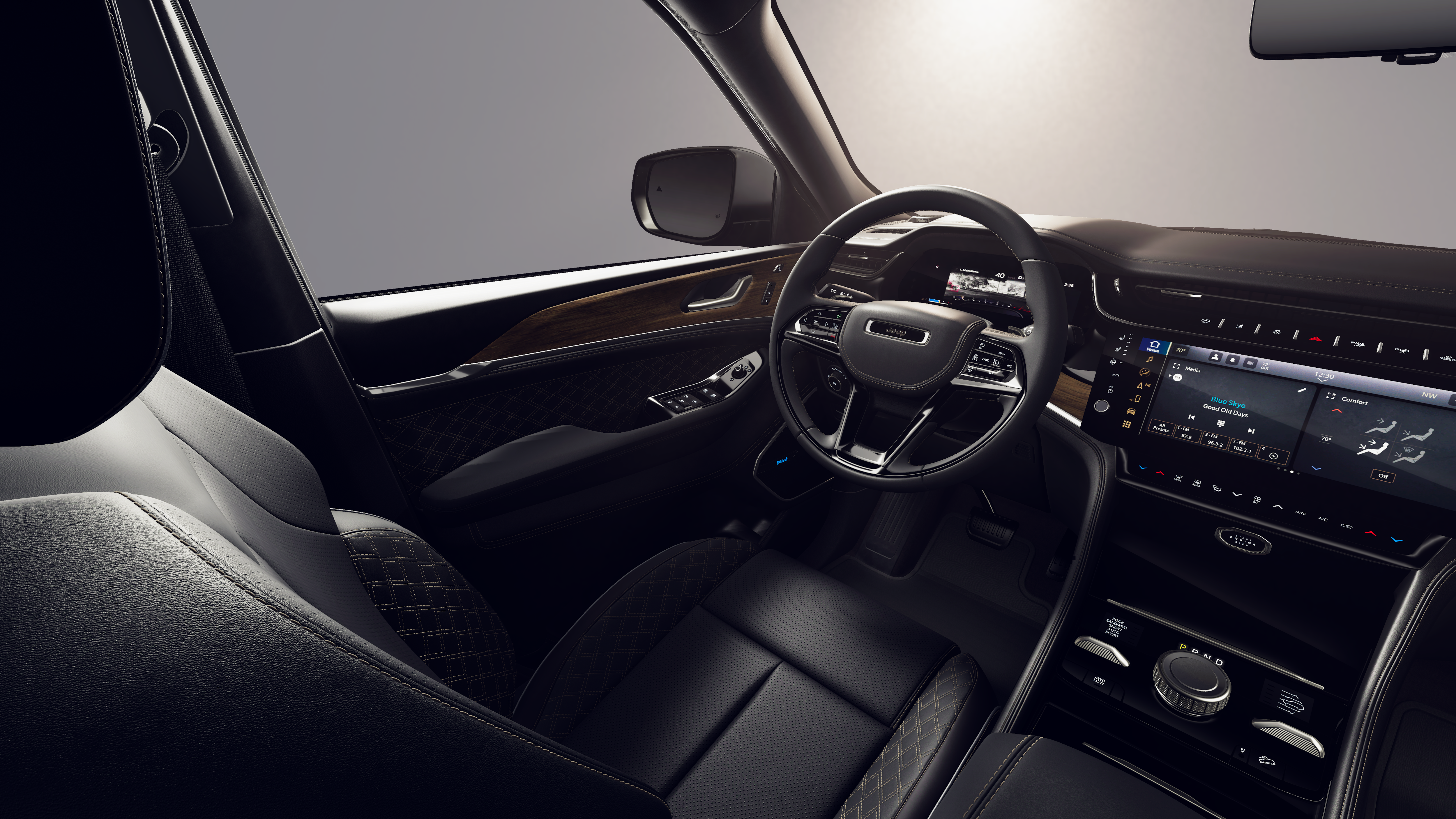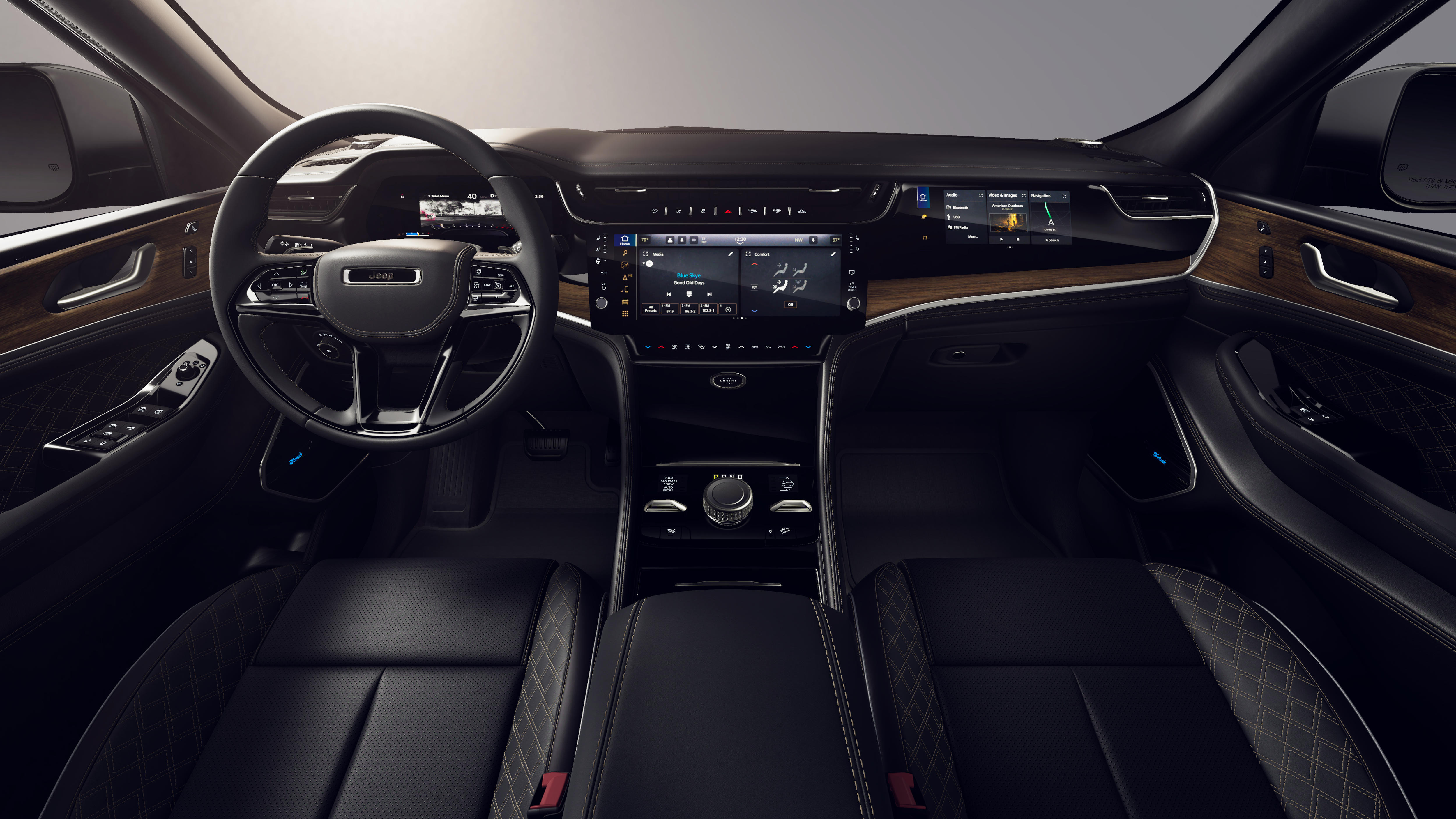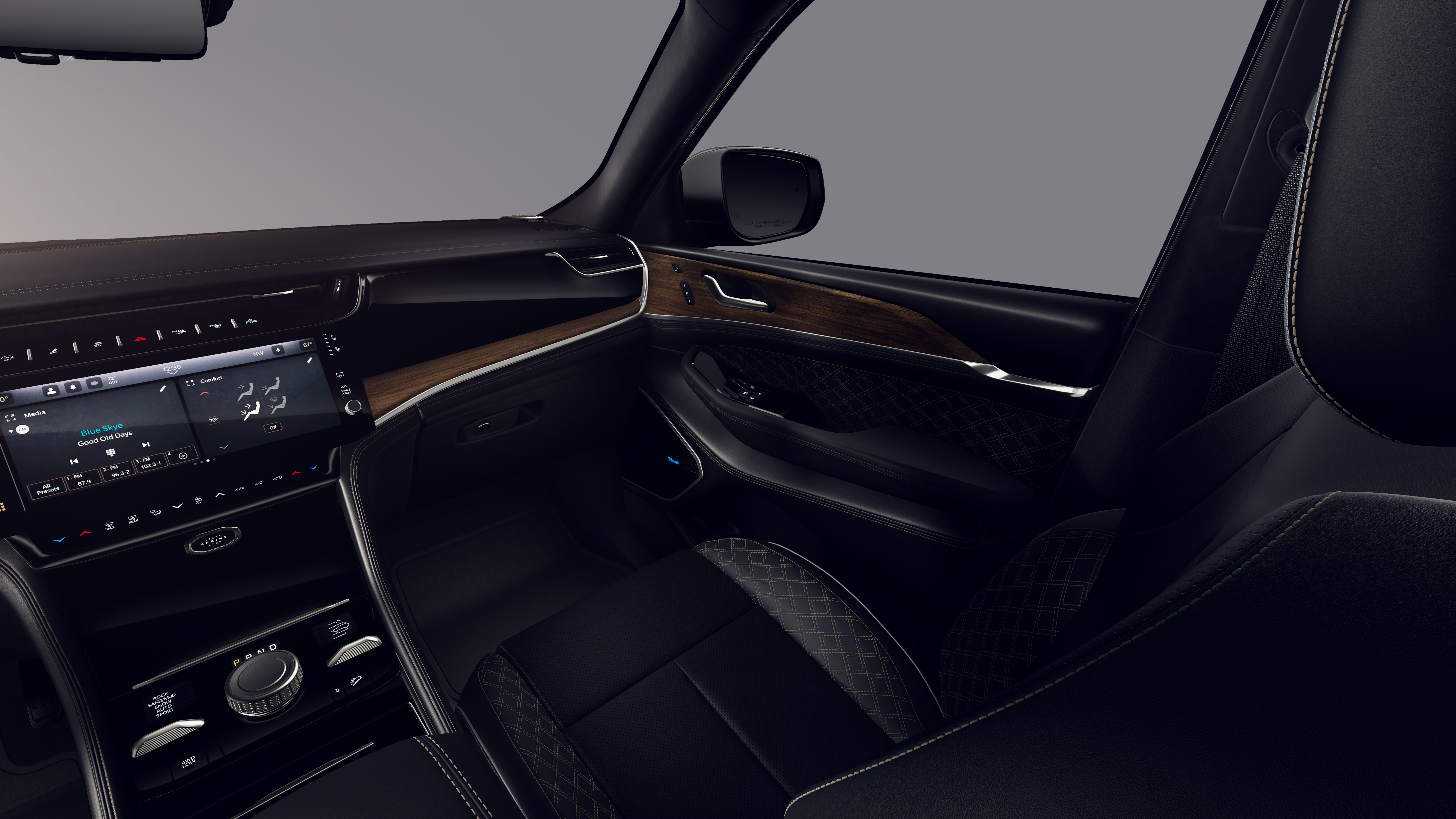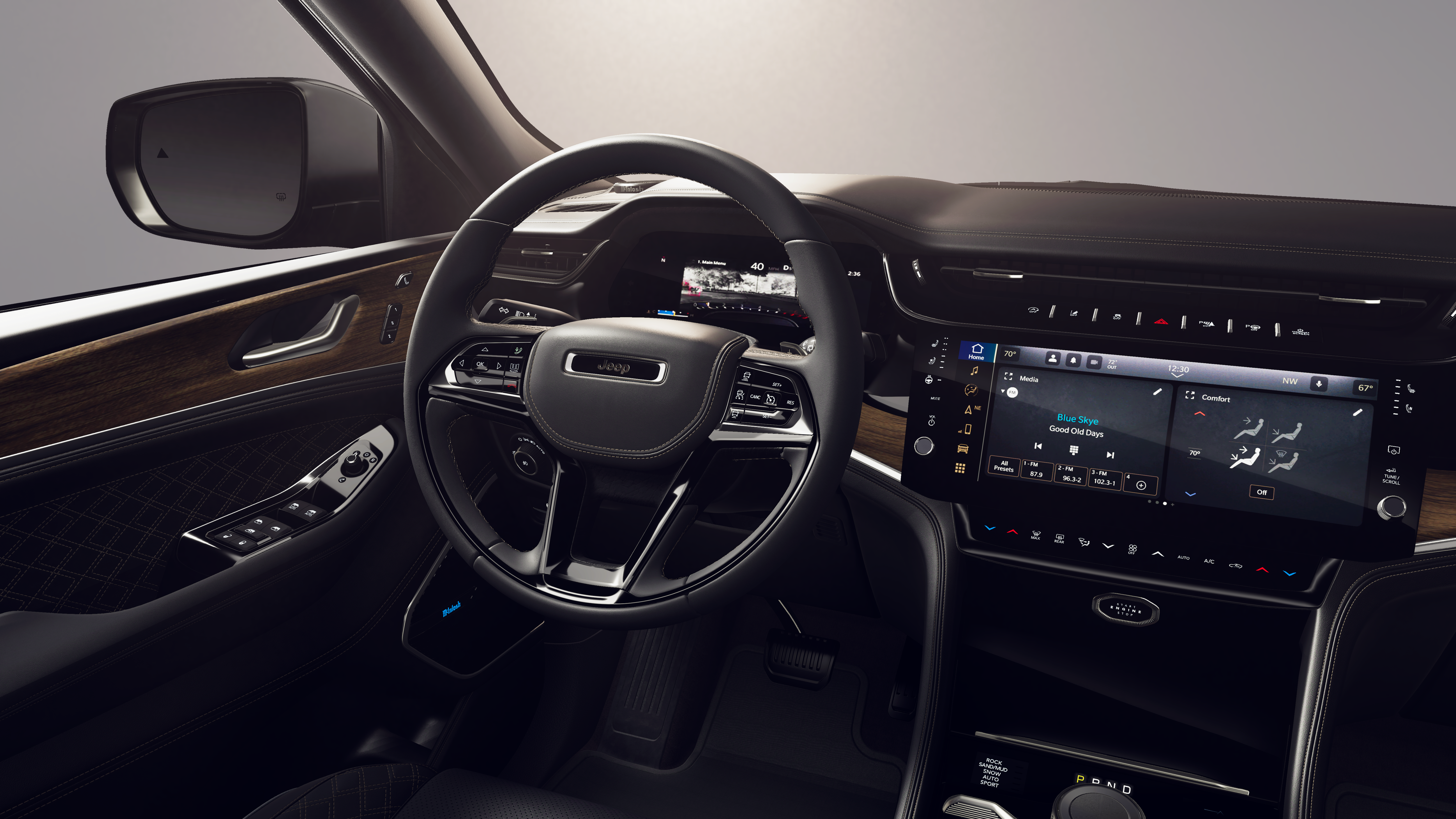 21/26 City/Highway MPG 4WD, 19 Speakers, 3.70 Rear Axle Ratio, 4-Wheel Disc Brakes, 4G LTE Wi-Fi Hot Spot, ABS brakes, Active Noise Control System, Adaptive suspension, ADV Protech Group IV, Air Conditioning, Alloy wheels, AM/FM radio: SiriusXM with 360L, Anti-whiplash front head restraints, Apple CarPlay, AppLink/Apple CarPlay and Android Auto, Audio memory, Auto High-beam Headlights, Auto-dimming door mirrors, Auto-dimming Rear-View mirror, Auto-leveling suspension, Automatic temperature control, Auxiliary Battery, Brake assist, Bumpers: body-color, Compass, Connectivity - US/Canada, Delay-off headlights, Disassociated Touchscreen Display, Driver door bin, Driver vanity mirror, Dual front impact airbags, Dual front side impact airbags, Electronic Stability Control, Emergency communication system, Exterior Accents Dark Neutral Metallic, For Details, Visit DriveUconnect.com, Four wheel independent suspension, Front anti-roll bar, Front Bucket Seats, Front Center Armrest w/Storage, Front dual zone A/C, Front fog lights, Front License Plate Bracket, Front reading lights, Fully automatic headlights, Garage door transmitter, Genuine wood dashboard insert, Genuine wood door panel insert, Global Telematics Box Module (TBM), Gloss Black Exterior Mirrors, Google Android Auto, GPS Antenna Input, Heads-Up Display, Heated door mirrors, Heated Exterior Mirrors, Heated front seats, Heated rear seats, Heated steering wheel, Illuminated entry, Integrated Center Stack Radio, Integrated Voice Command with Bluetooth®, Knee airbag, Leather steering wheel, Low tire pressure warning, Manual Folding Exterior Mirrors, Memory seat, Navigation System, Night Vision with Pedestrian-Animal Detection, Normal Duty Suspension, Obsidian Package, Occupant sensing airbag, Outside temperature display, Overhead airbag, Overhead console, Painted Door Cladding, Palermo Leather Seats, Panic alarm, Passenger door bin, Passenger vanity mirror, Power door mirrors, Power driver seat, Power Liftgate, Power moonroof, Power passenger seat, Power steering, Power windows, Quick Order Package 2CU, Radio data system, Radio: Uconnect 5 Nav with 12.3 Display, Rain sensing wipers, Rear air conditioning, Rear anti-roll bar, Rear dual zone A/C, Rear reading lights, Rear seat center armrest, Rear window defroster, Rear window wiper, Remote keyless entry, Security system, Speed control, Speed-Sensitive Wipers, Split folding rear seat, Spoiler, Steering wheel memory, Steering wheel mounted audio controls, Tachometer, Telescoping steering wheel, Tilt steering wheel, Traction control, Trip computer, Turn signal indicator mirrors, USB Host Flip, Variably intermittent wipers, Ventilated front seats, Ventilated rear seats, Voltmeter, Wheels: 21 x 9.0 Black Painted Aluminum, Wheels: 21 x 9.0 Machined Face/Painted Aluminum, Windshield Wiper De-Icer, 4WD.