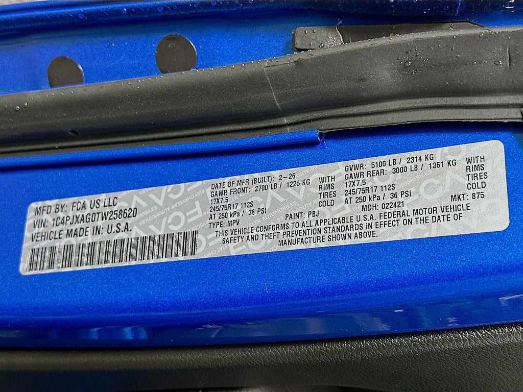 12.3 Touchscreen Display, 3.45 Overall Top Gear Ratio, 4-Wheel Disc Brakes, 4G LTE Wi-Fi Hot Spot, 7 and 4 Pin Wiring Harness, 8 Speakers, ABS brakes, Air Conditioning, AM/FM radio: SiriusXM with 360L, Apple CarPlay, Apple CarPlay/Android Auto, Aux Battery, Auxiliary Switches, Brake assist, Class II Receiver Hitch, Cloth Low-Back Bucket Seats, Compass, Connectivity - US/Canada, Delay-off headlights, Driver door bin, Driver vanity mirror, Dual front impact airbags, Dual front side impact airbags, Electronic Stability Control, For More Info, Call 800-643-2112, Front anti-roll bar, Front Bucket Seats, Front Center Armrest w/Storage, Front fog lights, Front reading lights, Google Android Auto, Illuminated entry, Integrated Center Stack Radio, Integrated roll-over protection, Low tire pressure warning, Non-Lock Fuel Cap Without Discriminator, Normal Duty Suspension, Occupant sensing airbag, Outside temperature display, Overhead airbag, Panic alarm, ParkView Rear Back-Up Camera, Passenger door bin, Passenger vanity mirror, Power steering, Power windows, Quick Order Package 23B Sport, Radio data system, Radio: Uconnect 5 with 12.3 Display, Rear anti-roll bar, Rear reading lights, Remote keyless entry, SiriusXM Radio Service, SiriusXM with 360L, Speed control, Steering wheel mounted audio controls, Stop-Start Dual Battery System, Tachometer, Telescoping steering wheel, Tilt steering wheel, Traction control, Trailer Tow and Auxiliary Switch Group, Trip computer, Variably intermittent wipers, Wheels: 17 x 7.5 Black Steel Styled.