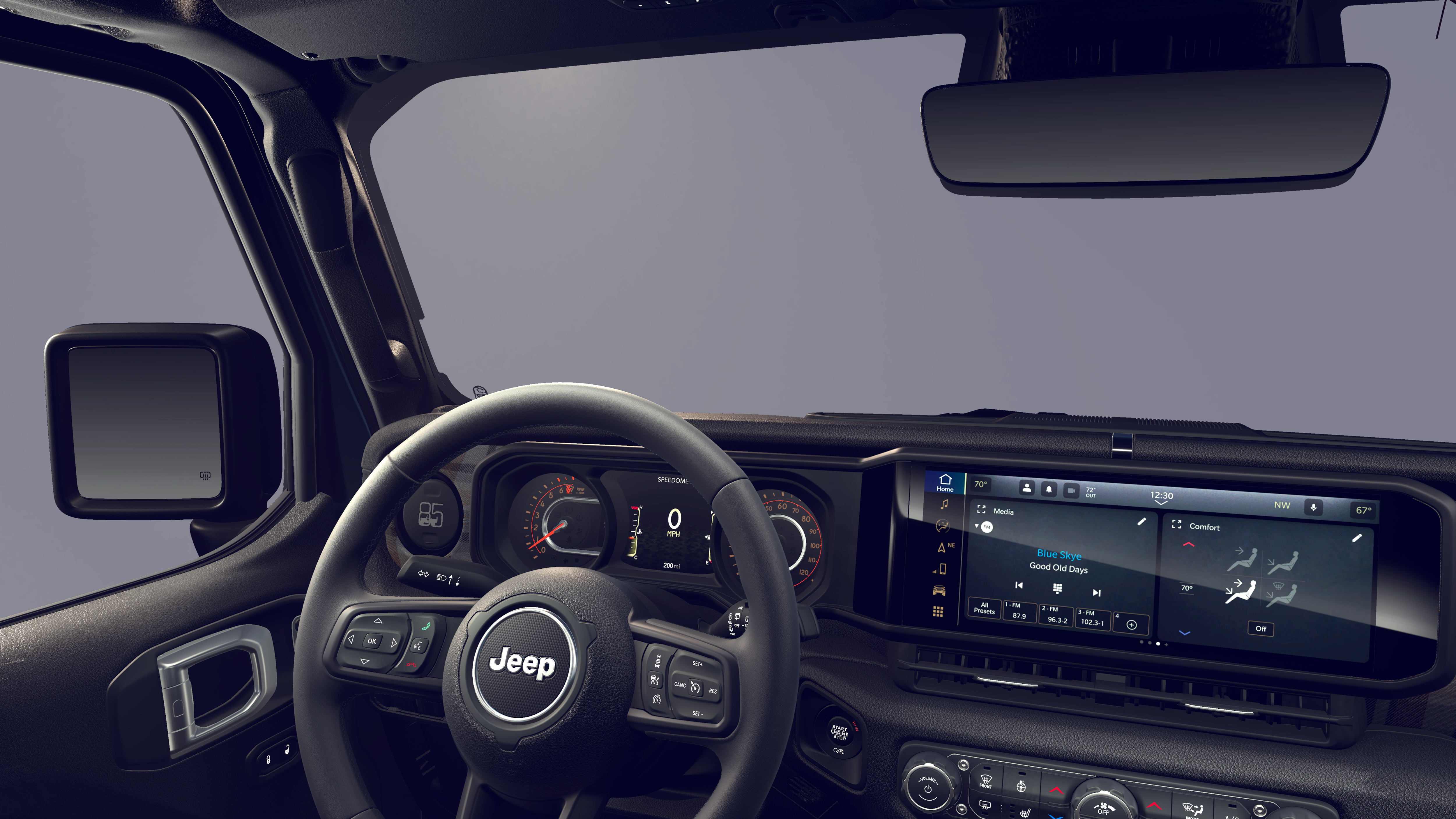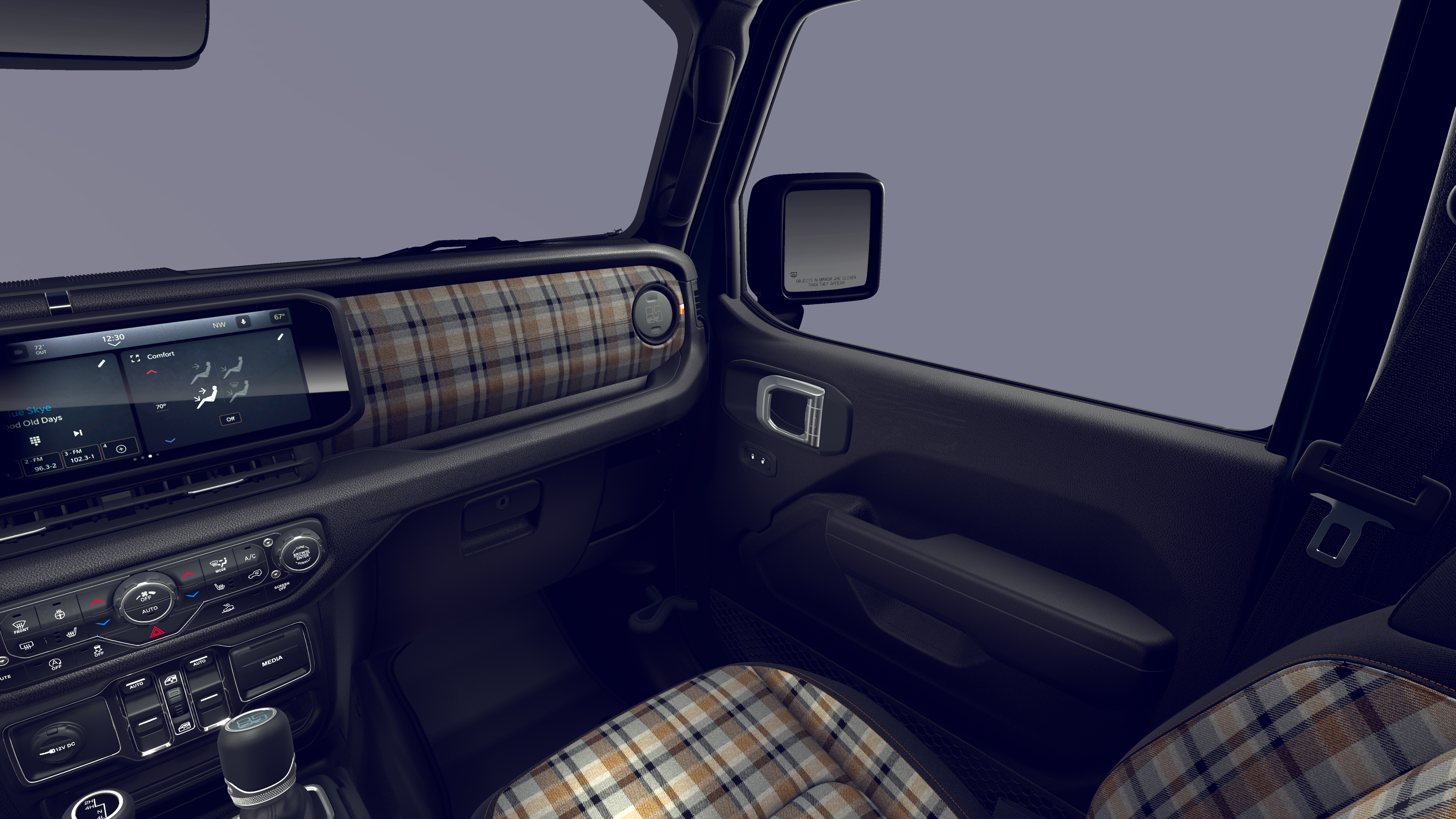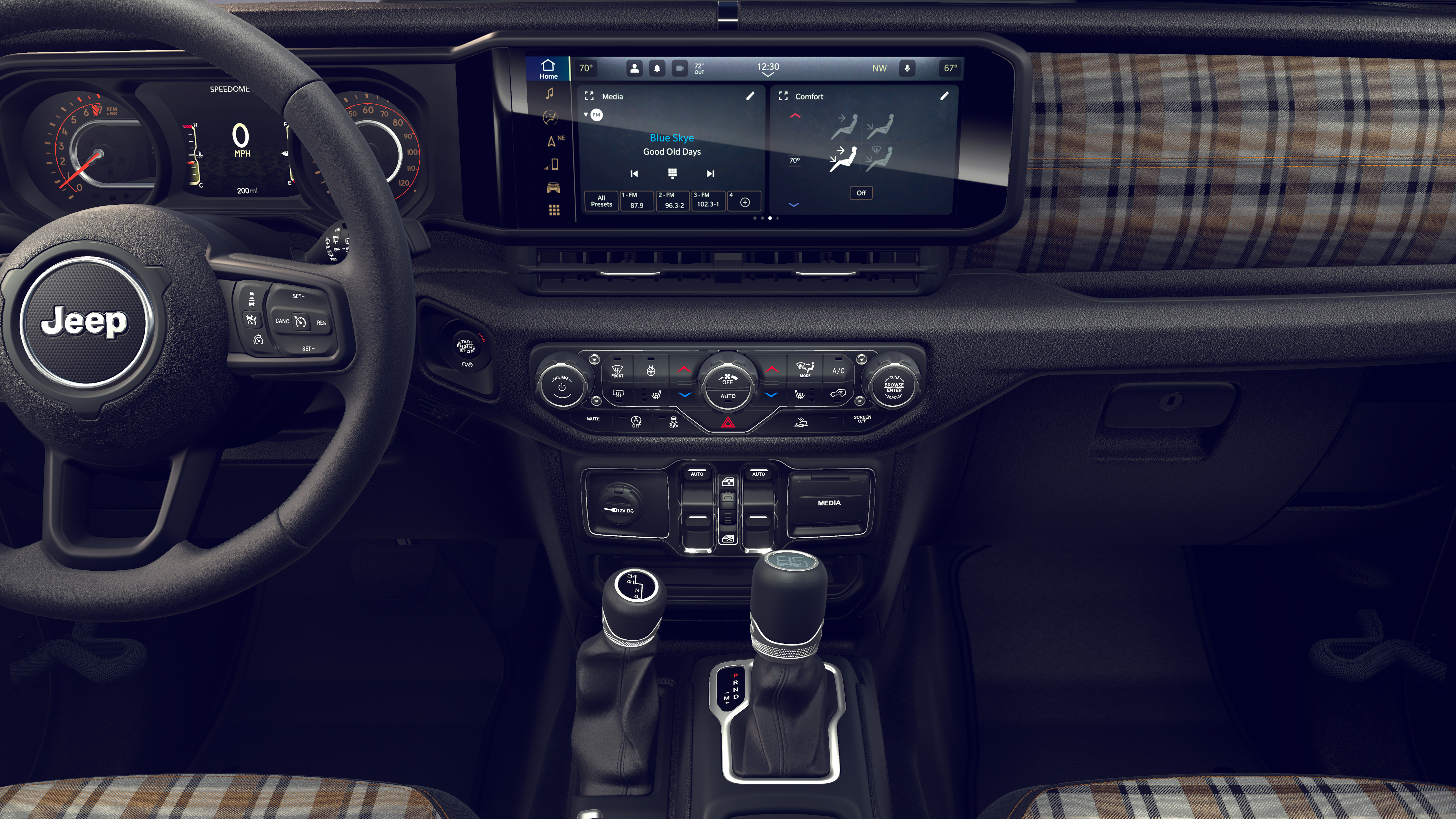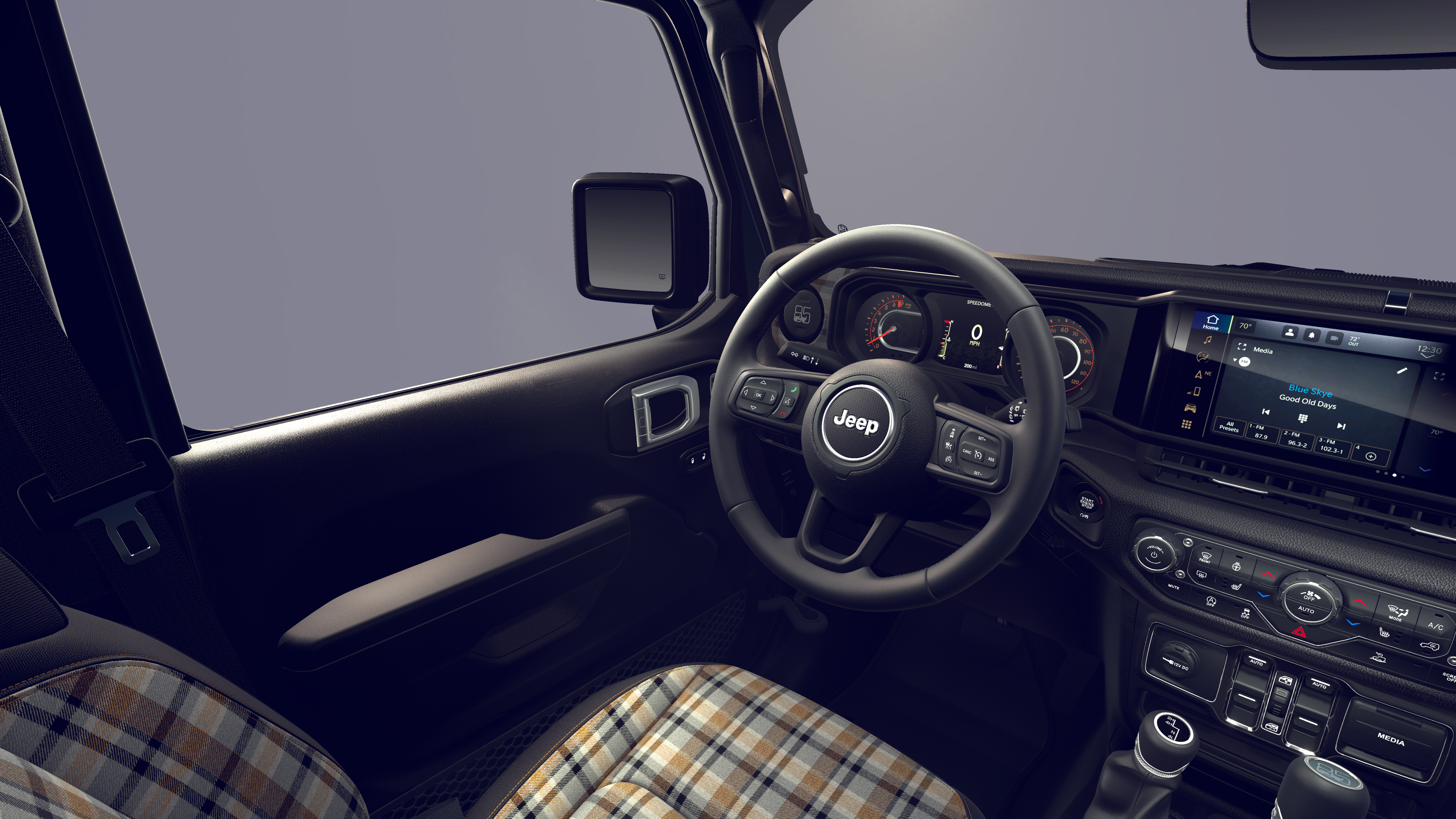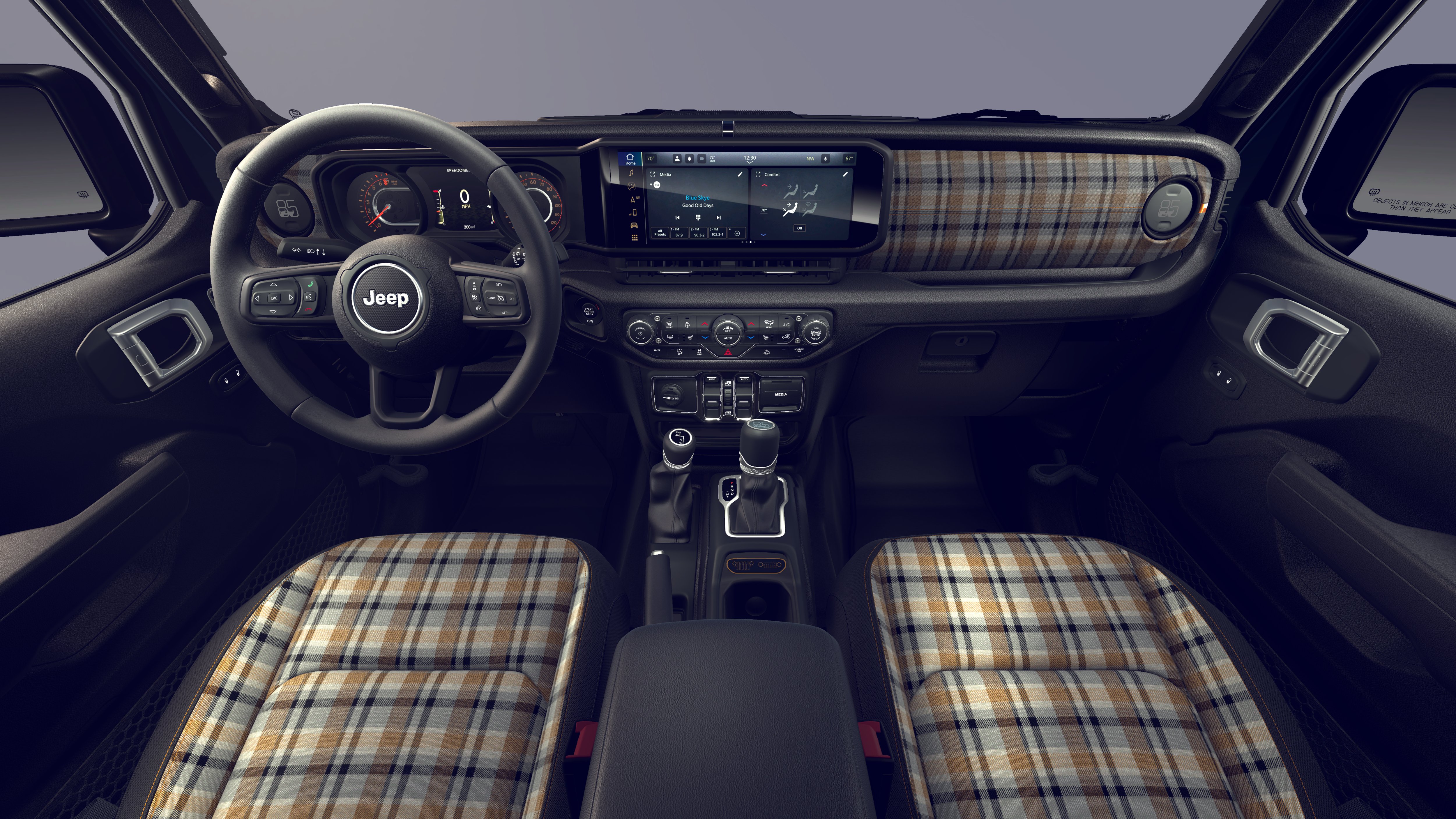 12.3 Touchscreen Display, 2-Door Passive Entry, Front Door Locks, 3.45 Overall Top Gear Ratio, 4-Wheel Disc Brakes, 4G LTE Wi-Fi Hot Spot, 8 Speakers, 85th Anniversary Group, 85th Cupholder Plaque, 85th Fender Decal, 85th Shifter Medallion, 85th Tailgate Decal, 85th Wrangler Hood Decal, ABS brakes, Adaptive Cruise Control with Stop, Advanced Brake Assist, Air Conditioning, Air Conditioning with Auto Temp Control, Air Filtering, Alpine Premium Audio System, AM/FM radio: SiriusXM with 360L, Anti-Lock 4-Wheel Disc Brakes, Apple CarPlay, Apple CarPlay/Android Auto, Automatic Headlamps, Aux Battery, Berber Cargo Mats, Berber Floor Mats, Black 3-Piece Hard Top, Body Color Fenders Flares, Brake assist, Bronze Tow Hooks, Central ADAS Decision Module (CADM), Cloth Seat with Plaid Insert and Tag, Cluster 7.0 TFT Color Display, Compass, Connectivity - US/Canada, Corning Gorilla Glass, Daytime Running Lamps LED Accents, Deep Tint Sunscreen Windows, Delay-off headlights, Driver door bin, Driver vanity mirror, Dual front impact airbags, Dual front side impact airbags, Electronic Stability Control, Emergency/Assistance Call, For More Info, Call 800-643-2112, Freedom Panel Storage Bag, Front anti-roll bar, Front Bucket Seats, Front Center Armrest w/Storage, Front fog lights, Front LED Fog Lamps, Front reading lights, Full Speed Forward Collision Warning Plus, Google Android Auto, Gray/Bronze Trail Rated Badge, Heated Front Seats, Heated Steering Wheel, Illuminated entry, Integrated Center Stack Radio, Integrated roll-over protection, LED Premium Reflector Headlamps, Low tire pressure warning, Manufacture Statement of Origin, Mayan Gold Interior Accents, No Soft Top, Non-Lock Fuel Cap Without Discriminator, Normal Duty Suspension, Occupant sensing airbag, Outside temperature display, Overhead airbag, Panic alarm, ParkView Rear Back-Up Camera, Passenger door bin, Passenger vanity mirror, Plaid Wrap Instrument Panel Mid-Bolster, Power Heated Mirrors, Power steering, Power windows, Premium Wrapped Steering Wheel, Quick Order Package 22F 85th Anniversary Edition, Radio data system, Radio: Uconnect 5 with 12.3 Display, Rear anti-roll bar, Rear reading lights, Rear Window Defroster, Rear Window Wiper/Washer, Remote keyless entry, Security Alarm, SiriusXM Radio Service, SiriusXM with 360L, Speed control, Split folding rear seat, Steering wheel mounted audio controls, Stop-Start Dual Battery System, Sun Visors with Illuminated Vanity Mirrors, Tachometer, Telescoping steering wheel, Tilt steering wheel, Traction control, Trip computer, Universal Garage Door Opener, Variably intermittent wipers, Wheels: 17 x 7.5 Black Steel Styled, Wheels: 17 x 7.5 Steel Oxide.