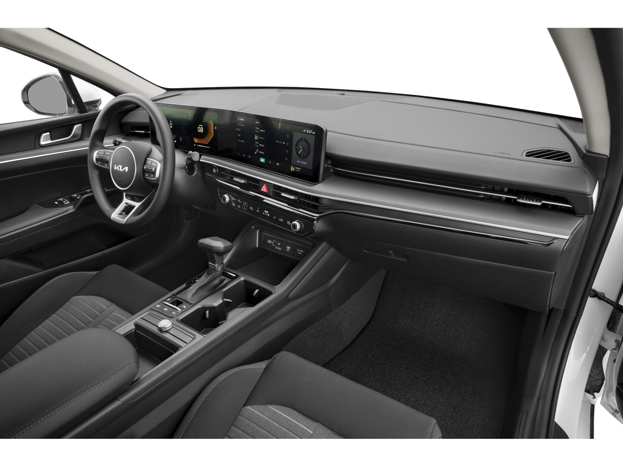 26/37 City/Highway MPG K5 LXS, Interstellar Gray, Black w/Cloth Seat Trim, 6 Speakers, Emergency communication system: Kia Connect (includes 1 year free trial), Four wheel independent suspension, Fully automatic headlights, Outside temperature display, Steering wheel mounted audio controls, Wheels: 16 x 6.5J Gloss Black Alloy, 4-Wheel Disc Brakes, ABS brakes, Air Conditioning, AM/FM radio: SiriusXM, Auto High-beam Headlights, Automatic temperature control, Brake assist, Bumpers: body-color, Carpeted Floor Mats, Cloth Seat Trim, Delay-off headlights, Driver door bin, Driver vanity mirror, Dual front impact airbags, Dual front side impact airbags, Electronic Stability Control, Front anti-roll bar, Front Bucket Seats, Front Center Armrest, Front dual zone A/C, Front reading lights, Heated door mirrors, Illuminated entry, Knee airbag, LED Trunk Light, Low tire pressure warning, Occupant sensing airbag, Overhead airbag, Overhead console, Panic alarm, Passenger door bin, Passenger vanity mirror, Power door mirrors, Power steering, Power windows, Radio data system, Radio: AM/FM Audio System, Rear anti-roll bar, Rear seat center armrest, Rear side impact airbag, Rear window defroster, Remote keyless entry, Roadside Assistance Kit, Security system, Speed control, Speed-sensing steering, Split folding rear seat, Tachometer, Telescoping steering wheel, Tilt steering wheel, Traction control, Trip computer, Variably intermittent wipers, K5 LXS, Interstellar Gray, Black w/Cloth Seat Trim, 6 Speakers, Emergency communication system: Kia Connect (includes 1 year free trial), Four wheel independent suspension, Fully automatic headlights, Outside temperature display, Steering wheel mounted audio controls, Wheels: 16 x 6.5J Gloss Black Alloy. Every vehicle is priced to sell and the price you’ll pay. There are no additional destination fees or hidden add-ons. You asked for a simpler way to buy a car, and we listened.