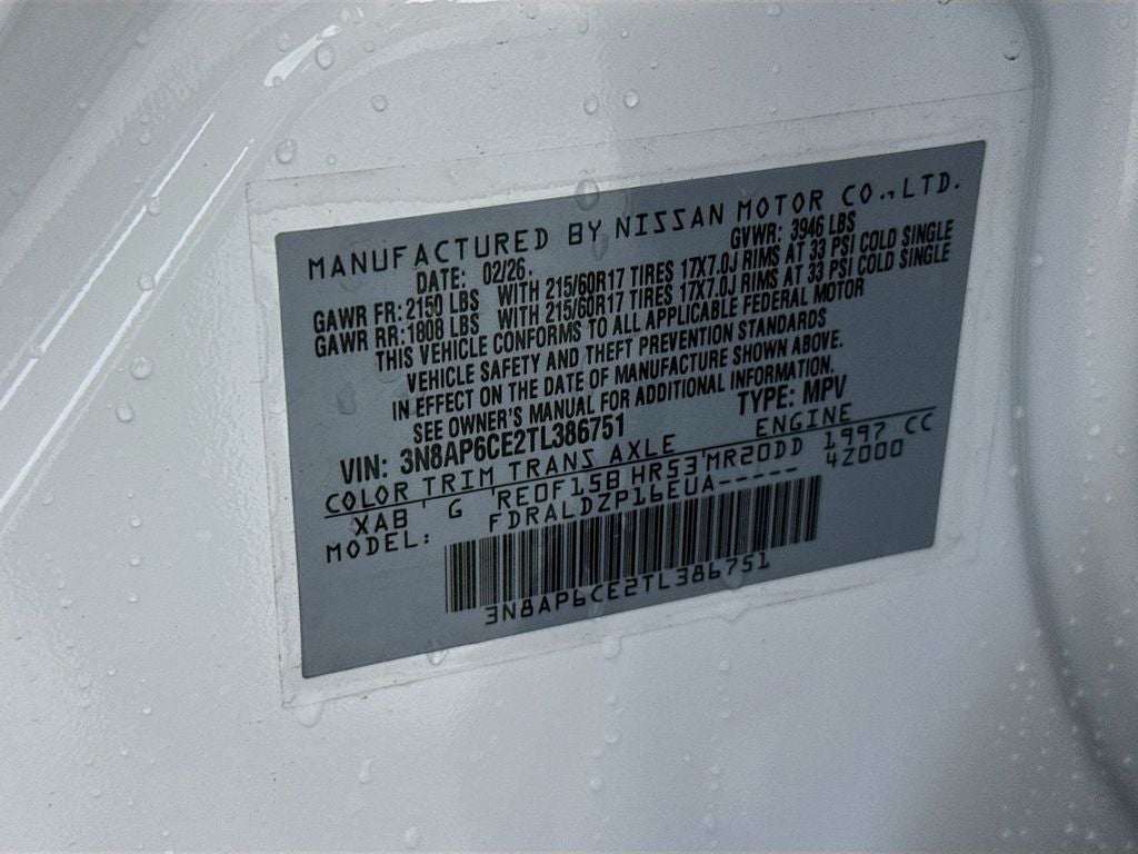 2026 Nissan Kicks SV 2.0L DOHC CVT with Xtronic FWD 4D Sport Utility Aspen White/Super Black