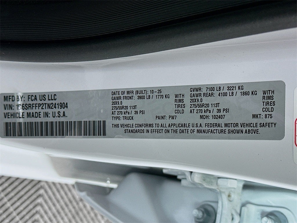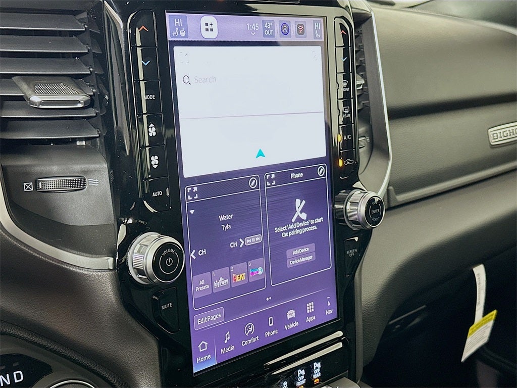 1500 Big Horn/Lone Star, 4D Crew Cab, 3.0L I6, 8-Speed Automatic, 4WD, Bright White Clearcoat, 115V Auxiliary Power Outlet, 115V Auxiliary Rear Power Outlet, 12 Touchscreen Display, 3 Rear Seat Head Restraints, 4 Way Front Headrests, 400W Inverter, 4G LTE Wi-Fi Hot Spot, Accent Color Door Handles, Accent Color Premium Power Mirrors, Accent Color Tailgate Handle, Anti-Spin Differential Rear Axle, Apple CarPlay, Auto High-beam Headlights, Auto Power-Folding Mirrors, Auto-Dimming Exterior Driver Mirror, Auto-Dimming Rear-View Mirror, Big Horn Level 2 Equipment Group, Black Exterior Mirrors, Black Exterior Truck Badging, Black Headlamp Bezels, Black Interior Accents, Black Painted Exterior Mirrors Caps, Black Premium Power Mirrors, Black Tail Lamp Bezels, Body Color Fender Flares, Body Color Front Bumper, Bucket Seats, Center Console Parts Module, Cluster 7.0 TFT Color Display, Configurable Drive Mode, Connectivity - US/Canada, Convex Wide-Angle Exterior Mirror Insert, Delay-off headlights, Deluxe Cloth Bucket Seats, Disassociated Touchscreen Display, Exterior Mirrors Courtesy Lamps, Front fog lights, Front Seat Back Map Pockets, Full Length Floor Console, Fully automatic headlights, Glove Box Lamp, Google Android Auto, GPS Antenna Input, GPS Navigation, Grille Black Surround Black Mesh, HD Radio, Heated Front Seats, Heated Steering Wheel, Illuminated entry, Integrated Center Stack Radio, Leather Wrapped Steering Wheel, LED Footwell Lighting, Manual Adjust 4-Way Driver Seat, Manual Adjust 4-Way Front Passenger Seat, Night Edition, Outside temperature display, Overhead LED Lamps, ParkView Rear Back-Up Camera, Power 2-Way Driver Lumbar Adjust, Power Adjust 8-Way Driver Seat, Power Adjustable Pedals, Premium Overhead Console, Quick Order Package 21Z Big Horn, RAM Grille Badge - Black, Rear 60/40 Folding Seat, Rear Center Armrest, Rear Power Sliding Window, Rear Window Defroster, Remote keyless entry, Remote Tailgate Release, Security Alarm, SiriusXM Radio Service, Steering Wheel Mounted Audio Controls, Telescoping steering wheel, Universal Garage Door Opener, USB Host Flip, Wheels: 20 x 9.0 Aluminum Painted Clad, 4-Wheel Disc Brakes, 48V Belt Starter Generator, 6 Speakers, ABS brakes, Air Conditioning, Alloy wheels, AM/FM radio, Apple CarPlay/Android Auto, Brake assist, Bumpers: chrome, Cloth Bucket Seats, Cluster 12 TFT Color Display, Compass, Driver door bin, Dual front impact airbags, Dual front side impact airbags, Electronic Stability Control, Front anti-roll bar, Front Bucket Seats, Front Center Armrest w/Storage, Front License Plate Bracket, Front reading lights, Front wheel independent suspension, Heated door mirrors, Low tire pressure warning, Manual Folding Exterior Mirrors, Occupant sensing airbag, Overhead airbag, Overhead console, Panic alarm, Passenger door bin, Passenger vanity mirror, Power door mirrors, Power steering, Power windows, Radio data system, RAM Grille Badge - Chrome, Rear anti-roll bar, Rear step bumper, Rear Wheelhouse Liners, Speed control, Supplier Part Tracking (J-1), Tachometer, Tilt steering wheel, Traction control, Trip computer, Variably intermittent wipers, Voltmeter, Wheels: 18 x 8 Cast-Aluminum Painted, 1500 Big Horn/Lone Star, 4D Crew Cab, 3.0L I6, 8-Speed Automatic, 4WD, Bright White Clearcoat, 115V Auxiliary Power Outlet, 115V Auxiliary Rear Power Outlet, 12 Touchscreen Display, 3 Rear Seat Head Restraints, 4 Way Front Headrests, 400W Inverter, 4G LTE Wi-Fi Hot Spot, Accent Color Door Handles, Accent Color Premium Power Mirrors, Accent Color Tailgate Handle, Anti-Spin Differential Rear Axle, Apple CarPlay, Auto High-beam Headlights, Auto Power-Folding Mirrors, Auto-Dimming Exterior Driver Mirror, Auto-Dimming Rear-View Mirror, Big Horn Level 2 Equipment Group, Black Exterior Mirrors, Black Exterior Truck Badging, Black Headlamp Bezels, Black Interior Accents, Black Painted Ext