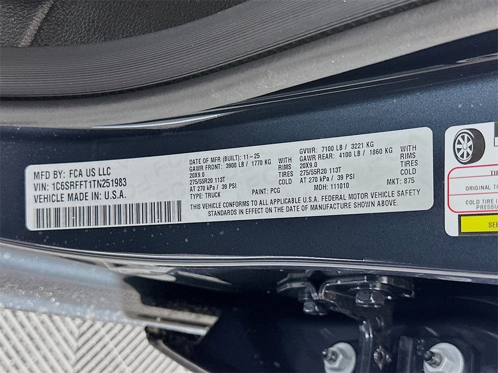 1500 Big Horn/Lone Star, 4D Crew Cab, HEMI 5.7L V8 Multi Displacement VVT eTorque, 8-Speed Automatic, 4WD, Forged Blue Metallic, 115V Auxiliary Power Outlet, 115V Auxiliary Rear Power Outlet, 12 Touchscreen Display, 2nd Row in Floor Storage Bins, 3 Rear Seat Head Restraints, 4 Way Front Headrests, 400W Inverter, 4G LTE Wi-Fi Hot Spot, 9 Amplified Speakers with Subwoofer, Accent Color Door Handles, Accent Color Premium Power Mirrors, Accent Color Tailgate Handle, Air Conditioning ATC with Dual Zone Control, Anti-Spin Differential Rear Axle, Apple CarPlay, Auto Power-Folding Mirrors, Auto-Dimming Exterior Driver Mirror, Auto-Dimming Rear-View Mirror, Big Horn Level 2 Equipment Group, Black Exterior Mirrors, Black Exterior Truck Badging, Black Headlamp Bezels, Black Interior Accents, Black Painted Exterior Mirrors Caps, Black Premium Power Mirrors, Black Tail Lamp Bezels, Body Color Fender Flares, Body Color Front Bumper, Body Color Rear Bumper with Step Pads, Bucket Seats, Center Console Parts Module, Cluster 7.0 TFT Color Display, Configurable Drive Mode, Connected Travel and Traffic Services, Connectivity - US/Canada, Convex Wide-Angle Exterior Mirror Insert, Deluxe Cloth Bucket Seats, Disassociated Touchscreen Display, Dual Exhaust with Black Tips, Exterior Mirrors Courtesy Lamps, Exterior Mirrors with Heating Element, Exterior Mirrors with Supplemental Signals, Front fog lights, Front Seat Back Map Pockets, Full Length Floor Console, Fully automatic headlights, Global Telematics Box Module, Glove Box Lamp, Google Android Auto, GPS Antenna Input, GPS Navigation, Grille Black Surround Black Mesh, HD Radio, Heated Front Seats, Heated Steering Wheel, Integrated Center Stack Radio, Integrated Voice Command with Bluetooth®, Leather Wrapped Steering Wheel, LED Dome Lamp with on/Off Switch, LED Footwell Lighting, Manual Adjust 4-Way Front Passenger Seat, Media Hub with 2 Charge Only USBs, Night Edition, Overhead LED Lamps, ParkView Rear Back-Up Camera, Power 2-Way Driver Lumbar Adjust, Power Adjust 8-Way Driver Seat, Power Adjustable Pedals, Premium Overhead Console, Quick Order Package 27Z Big Horn, Radio: Uconnect 5 Navigation with 12.0 Display, RAM Grille Badge - Black, Rear 60/40 Folding Seat, Rear Center Armrest, Rear Power Sliding Window, Rear Window Defroster, Remote Tailgate Release, Security Alarm, SiriusXM Radio Service, SiriusXM with 360L, Speed control, Steering Wheel Mounted Audio Controls, Sun Visors with Illuminated Vanity Mirrors, Universal Garage Door Opener, USB Host Flip, Wheels: 20 x 9.0 Aluminum Painted Clad, Wheels: 20 x 9 Aluminum Chrome Clad, 33 Gallon Fuel Tank, 4-Wheel Disc Brakes, 48V Belt Starter Generator, 6 Speakers, ABS brakes, Air Conditioning, Alloy wheels, AM/FM radio, Apple CarPlay/Android Auto, Auto High-beam Headlights, Brake assist, Bumpers: chrome, Cloth Bucket Seats, Cluster 12 TFT Color Display, Compass, Delay-off headlights, Driver door bin, Dual front impact airbags, Dual front side impact airbags, Electronic Stability Control, Front anti-roll bar, Front Bucket Seats, Front Center Armrest w/Storage, Front License Plate Bracket, Front reading lights, Front wheel independent suspension, Heated door mirrors, Illuminated entry, Low tire pressure warning, Manual Adjust 4-Way Driver Seat, Manual Folding Exterior Mirrors, Occupant sensing airbag, Outside temperature display, Overhead airbag, Overhead console, Panic alarm, Passenger door bin, Passenger vanity mirror, Power door mirrors, Power steering, Power windows, Radio data system, Radio: Uconnect 5 W with 8.4 Display, RAM Grille Badge - Chrome, Rear anti-roll bar, Rear step bumper, Remote keyless entry, Supplier Part Tracking (J-1), Tachometer, Telescoping steering wheel, Tilt steering wheel, Traction control, Trip computer, Variably intermittent wipers, Voltmeter, 1500 Big Horn/Lone Star, 4D Cr