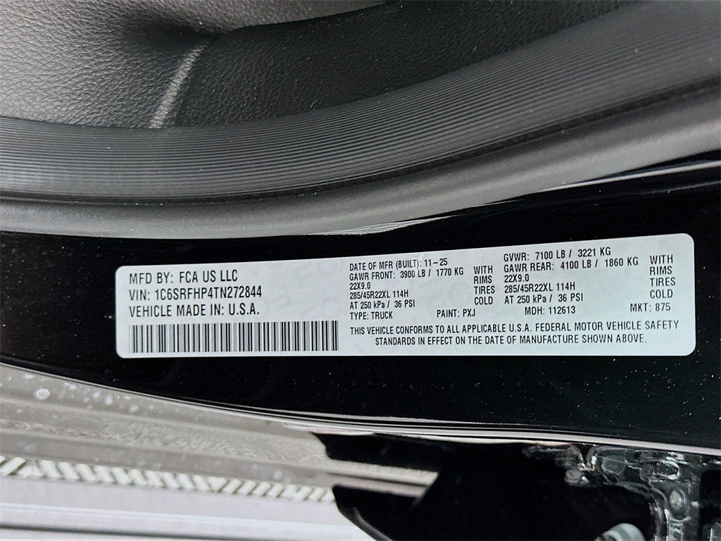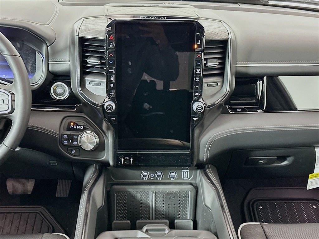 1500 Limited, 4D Crew Cab, 3.0L I6, 8-Speed Automatic, 4WD, Diamond Black Crystal Pearlcoat, Black Leather, 12-Way/1-Way Trailer Connector, 14.4 Touchscreen Display, 19 Speakers, 240 Amp Alternator, 4G LTE Wi-Fi Hot Spot, Accent Color Door Handles, Accent Color Premium Power Mirrors, Accent Color Tailgate Handle, Active Noise Control System, Adjustable pedals, Air Conditioning, Apple CarPlay, Apple CarPlay/Android Auto, Audio memory, Auto Power-Folding Mirrors, Auto-dimming door mirrors, Auto-Dimming Exterior Driver Mirror, Auto-dimming Rear-View mirror, Auto-leveling suspension, Automatic temperature control, Bed Utility Group, Black Day Light Opening Moldings, Black Exterior Truck Badging, Black Grille Surround Texture 7 Black, Black Headlamp Bezels, Black Painted Exterior Mirrors Caps, Black Tail Lamp Bezels, Body Color Front Bumper, Body Color Rear Bumper with Step Pads, Connected Travel and Traffic Services, Connectivity - US/Canada, Convex Wide-Angle Exterior Mirror Insert, Disassociated Touchscreen Display, Dome Dual LED Reading Lamp, Drowsy Driver Detection, Dual Exhaust with Black Tips, Dual-Pane Panoramic Sunroof, Electronic Stability Control, Evasive Steer Assist, Exterior 115V AC Outlet, Exterior Mirrors Courtesy Lamps, Exterior Mirrors with Heating Element, Exterior Mirrors with Memory, Exterior Mirrors with Supplemental Signals, Exterior Parking Camera Rear, Front dual zone A/C, Garage door transmitter, Global Telematics Box Module, Google Android Auto, GPS Antenna Input, GPS Navigation, Hands-Free Active Driving Assist System, HD Radio, Heads-Up Display, Heated front seats, Heated rear seats, Heated steering wheel, Illuminated entry, Integrated Center Stack Radio, Integrated Voice Command with Bluetooth®, Intersection Collision Assist System, LED CHMSL Lamp, LED Dome/Reading Lamp, Limited Level A Equipment Group, MOPAR 4 Adjustable Cargo Tie-Down Hooks, Navigation System, Night Edition, Pirelli Brand Tires, Quick Order Package 22M Limited, Radio: Uconnect 5 Nav with 14.4 Display, Rain sensing wipers, RAM Grille Badge - Black, RamBox Cargo Management System, Security system, SiriusXM Radio Service, SiriusXM with 360L, Smartphone as a Key Capable, Sport Performance Hood, Surround View Camera System, Traffic Sign Recognition, Trailer Brake Control, Tri-Fold Tonneau Cover, Turn signal indicator mirrors, USB Host Flip, Variably intermittent wipers, Ventilated front seats, Ventilated rear seats, Wheels: 22 x 9 Premium Black Aluminum, 3.92 Rear Axle Ratio, 4-Wheel Disc Brakes, ABS brakes, Alloy wheels, AM/FM radio, Auto High-beam Headlights, Bodyside moldings, Brake assist, Bumpers: chrome, Chrome Exterior Mirrors, Compass, Delay-off headlights, Driver door bin, Driver vanity mirror, Dual front impact airbags, Dual front side impact airbags, Front anti-roll bar, Front Bucket Seats, Front Center Armrest w/Storage, Front fog lights, Front License Plate Bracket, Front reading lights, Front wheel independent suspension, Fully automatic headlights, Genuine wood console insert, Genuine wood dashboard insert, Genuine wood door panel insert, Heated door mirrors, Leather steering wheel, Low tire pressure warning, Memory seat, Occupant sensing airbag, Outside temperature display, Overhead airbag, Overhead console, Panic alarm, Passenger door bin, Passenger vanity mirror, Pedal memory, Power door mirrors, Power driver seat, Power passenger seat, Power steering, Power windows, Premium Quilted Leather Bucket Seats, Radio data system, Radio: Uconnect 5 Navigation with 12.0 Display, Rear anti-roll bar, Rear reading lights, Rear seat center armrest, Rear step bumper, Rear window defroster, Remote keyless entry, Speed control, Split folding rear seat, Steering wheel mounted audio controls, Tachometer, Telescoping steering wheel, Tilt steering wheel, Traction control, Trip computer, Voltmeter, Wheels: 20 x 9 Premium Paint/Pol