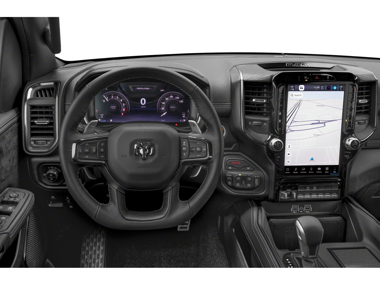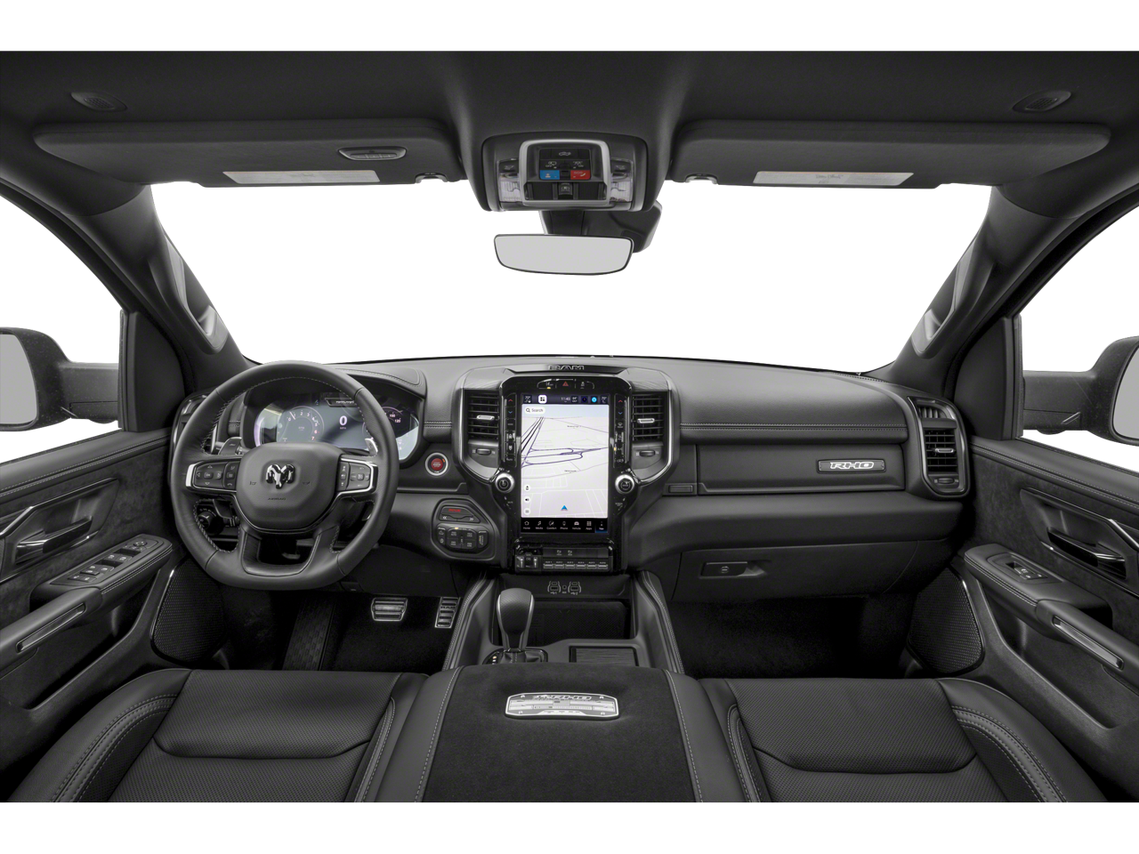 1500 RHO, 4D Crew Cab, 3.0L I6, 8-Speed Automatic, 4WD, Canyon Lake, Black Leather, 10 Speakers, 12-Way/1-Way Trailer Connector, 14.4 Touchscreen Display, 240 Amp Alternator, 4G LTE Wi-Fi Hot Spot, Adaptive suspension, Adjustable pedals, Apple CarPlay/Android Auto, Auto High-beam Headlights, Auto Power-Folding Mirrors, Auto-dimming door mirrors, Auto-Dimming Exterior Driver Mirror, Auto-dimming Rear-View mirror, Automatic temperature control, Bed Utility Group, Connected Travel and Traffic Services, Connectivity - US/Canada, Delay-off headlights, Disassociated Touchscreen Display, Dome Dual LED Reading Lamp, Driver Power Seat Back Massage, Driver Seat Memory, Driver/Passenger Wrapped Assist Handles, Drowsy Driver Detection, Dual Wireless Charging Pad, Dual-Pane Panoramic Sunroof, Evasive Steer Assist, Exterior 115V AC Outlet, Exterior Mirrors Courtesy Lamps, Exterior Mirrors with Heating Element, Exterior Mirrors with Memory, Exterior Mirrors with Supplemental Signals, Exterior Parking Camera Rear, Flareside Box, Front dual zone A/C, Front fog lights, Front Passenger Interactive Display, Front Passenger Power Seat Back Massage, Full Length Premium Upgraded Floor Console, Fully automatic headlights, Garage door transmitter, GPS Navigation, Hands-Free Active Driving Assist System, Harman/Kardon 19 Speaker Premium Sound, HD Radio, Heads-Up Display, Heated front seats, Heated Second Row Seats, Heated steering wheel, Illuminated entry, Integrated Center Stack Radio, Integrated Voice Command with Bluetooth®, Intersection Collision Assist System, Leather/Carbon Flat-Bottom Steering Wheel, LED CHMSL Lamp, Luxury Front Door Trim Panel, MOPAR 4 Adjustable Cargo Tie-Down Hooks, MOPAR Deployable Bed Step, Navigation System, Outside temperature display, Power Adjustable Pedals with Memory, Power Tailgate, Premium Wrapped Instrument Panel Bezel, Quick Order Package 22Y RHO, Radio: Uconnect 5 Nav with 14.4 Display, Radio/Driver Seat/Mirrors/Pedals Memory, Rain Sensitive Windshield Wipers, Real Carbon Fiber Interior Accents, Rear 60/40 Folding Split Recline Seat, Remote keyless entry, RHO Level 1 Equipment Group, Security system, SiriusXM Radio Service, Smartphone as a Key Capable, Steering wheel mounted audio controls, Surround View Camera System, Traffic Sign Recognition, USB Host Flip, Ventilated Front Seats, Ventilated Rear Seats, 3.92 Rear Axle Ratio, 4-Wheel Disc Brakes, ABS brakes, Air Conditioning, Alloy wheels, AM/FM radio, Brake assist, Compass, Driver door bin, Driver vanity mirror, Dual front impact airbags, Dual front side impact airbags, Electronic Stability Control, Front anti-roll bar, Front Bucket Seats, Front Center Armrest w/Storage, Front License Plate Bracket, Front reading lights, Front wheel independent suspension, Heated door mirrors, Leather Shift Knob, Leather steering wheel, Leather Trimmed Bucket Seats, Low tire pressure warning, Manufacturer's Statement of Origin, MOPAR RHO Exterior Graphics, Occupant sensing airbag, Overhead airbag, Overhead console, Panic alarm, Passenger door bin, Passenger vanity mirror, Power door mirrors, Power driver seat, Power passenger seat, Power steering, Power windows, Radio data system, Radio: Uconnect 5 Navigation with 12.0 Display, Rear reading lights, Rear seat center armrest, Rear step bumper, Rear window defroster, Speed control, Split folding rear seat, Sport steering wheel, Tachometer, Telescoping steering wheel, Tilt steering wheel, Traction control, Trip computer, Turn signal indicator mirrors, Variably intermittent wipers, Voltmeter, Wheels: 18 x 9 Black Paint/Polish Aluminum, 1500 RHO, 4D Crew Cab, 3.0L I6, 8-Speed Automatic, 4WD, Canyon Lake, Black Leather, 10 Speakers, 12-Way/1-Way Trailer Connector, 14.4 Touchscreen Display, 240 Amp Alternator, 4G LTE Wi-Fi Hot Spot, Adaptive suspension, Adjustable pedals, Apple CarPlay/Android Auto, Auto High-beam Headlights, Auto Power-Folding Mirr