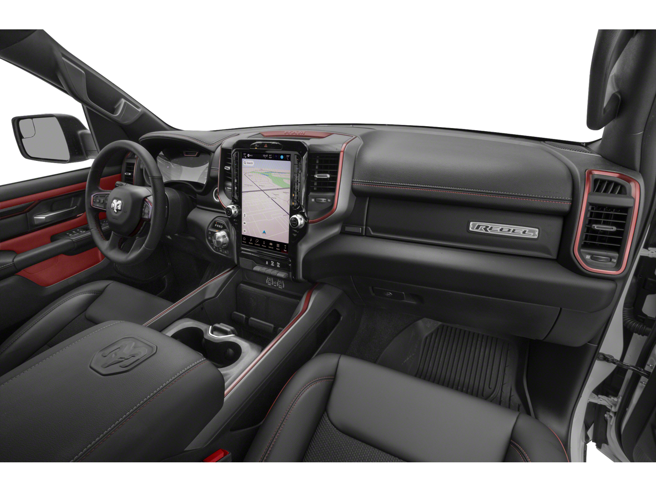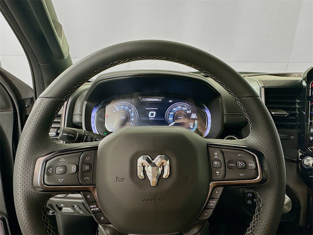 1500 Rebel, 4D Crew Cab, 3.0L I6, 8-Speed Automatic, 4WD, Diamond Black Crystal Pearlcoat, Black Leather, 115V Auxiliary Rear Power Outlet, 14.4 Touchscreen Display, 2-Door Passive Entry, Front Door Locks, 4G LTE Wi-Fi Hot Spot, Accent Color Door Handles, Accent Color Premium Power Mirrors, Accent Color Tailgate Handle, Active Noise Control System, Air Conditioning, Apple CarPlay, Apple CarPlay/Android Auto, Auto High-beam Headlights, Auto Power-Folding Mirrors, Auto-Dimming Exterior Driver Mirror, Auto-dimming Rear-View mirror, Automatic temperature control, Bed Utility Group, Black Painted Exterior Mirrors Caps, Brake assist, Connected Travel and Traffic Services, Connectivity - US/Canada, Convex Wide-Angle Exterior Mirror Insert, Delay-off headlights, Disassociated Touchscreen Display, Dome Dual LED Reading Lamp, Driver Seat Memory, Dual Wireless Charging Pad, Dual-Pane Panoramic Sunroof, Exterior 115V AC Outlet, Exterior Mirrors Approach Lamps, Exterior Mirrors Courtesy Lamps, Exterior Mirrors with Heating Element, Exterior Mirrors with Memory, Exterior Mirrors with Supplemental Signals, Front dual zone A/C, Front fog lights, Front Passenger Interactive Display, Front reading lights, Full Length Upgraded Floor Console, Fully automatic headlights, Garage door transmitter, Global Telematics Box Module, Google Android Auto, GPS Antenna Input, GPS Navigation, Harman/Kardon 19 Speaker Premium Sound, HD Radio, Heated Front Seats, Heated Second Row Seats, Heated Steering Wheel, Illuminated entry, Integrated Center Stack Radio, Integrated Voice Command with Bluetooth®, Media Hub with 2 Charge Only USBs, MOPAR 4 Adjustable Cargo Tie-Down Hooks, MOPAR Spray in Bedliner, Navigation System, Off-Road Information Pages, Outside temperature display, ParkView Rear Back-Up Camera, Power 2-Way Passenger Lumbar Adjust, Power Adjust 8-Way Front Passenger Seat, Power Adjustable Pedals with Memory, Power driver seat, Power Tailgate, Proximity Approach/Departure Lamps, Quick Order Package 21W Rebel, Radio: Uconnect 5 Nav with 14.4 Display, Radio/Driver Seat/Mirrors/Pedals Memory, Rain Sensitive Windshield Wipers, Rear Window Defroster, Rebel Level 2 Equipment Group, Remote keyless entry, Security Alarm, SiriusXM Radio Service, SiriusXM with 360L, Smartphone as a Key Capable, Steering wheel mounted audio controls, Trailer Brake Control, USB Host Flip, 10 Speakers, 3.92 Rear Axle Ratio, 33 Gallon Fuel Tank, 4 Way Front Headrests, 4-Wheel Disc Brakes, ABS brakes, Alloy wheels, AM/FM radio: SiriusXM with 360L, Black Exterior Mirrors, Bucket Seats, Cloth/Vinyl Bucket Seats, Compass, Driver door bin, Driver vanity mirror, Dual front impact airbags, Dual front side impact airbags, Electronic Stability Control, Front anti-roll bar, Front Bucket Seats, Front Center Armrest w/Storage, Front License Plate Bracket, Front Seat Back Map Pockets, Front wheel independent suspension, Heated door mirrors, Heated front seats, Heated steering wheel, Leather steering wheel, Low tire pressure warning, Manual Folding Exterior Mirrors, Occupant sensing airbag, Overhead airbag, Overhead console, Panic alarm, Passenger door bin, Passenger vanity mirror, Power 2-Way Driver Lumbar Adjust, Power Adjust 8-Way Driver Seat, Power door mirrors, Power steering, Power windows, Radio data system, Radio: Uconnect 5 Navigation with 12.0 Display, Rear 60/40 Folding Seat, Rear anti-roll bar, Rear seat center armrest, Rear step bumper, Speed control, Split folding rear seat, Tachometer, Telescoping steering wheel, Tilt steering wheel, Traction control, Trip computer, Variably intermittent wipers, Voltmeter, Wheels: 18 x 8.0 Painted Mid-Gloss Black, 1500 Rebel, 4D Crew Cab, 3.0L I6, 8-Speed Automatic, 4WD, Diamond Black Crystal Pearlcoat, Black Leather, 115V Auxiliary Rear Power Outlet, 14.4 Touchscreen Display, 2-Door Passive Entry, Front Door Locks, 4G LTE Wi-Fi Hot Spot, Acce