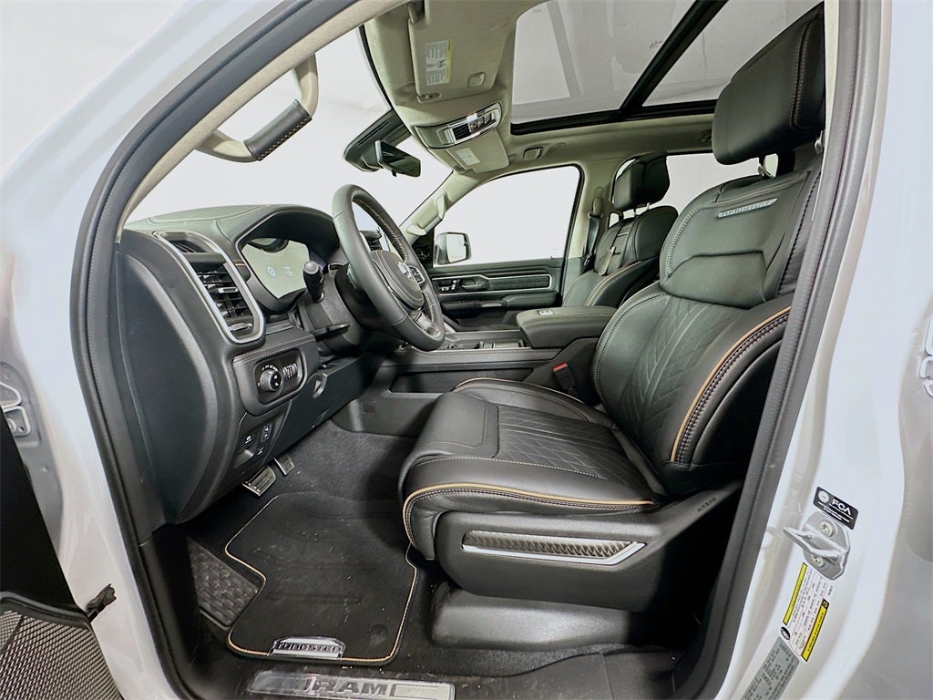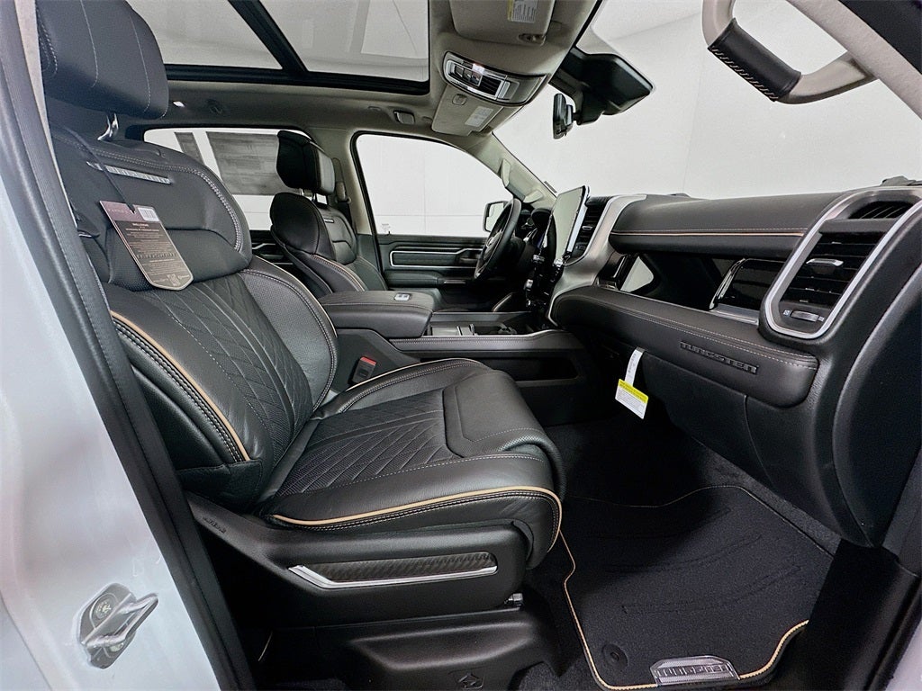 1500 Tungsten, 4D Crew Cab, 3.0L I6, 8-Speed Automatic, 4WD, Ivory White Tri-Coat Pearlcoat, Black Leather, Adjustable pedals, Air Conditioning, Apple CarPlay/Android Auto, Audio memory, Auto High-beam Headlights, Auto-dimming Rear-View mirror, Auto-leveling suspension, Automatic temperature control, Bed Utility Group, Electronic Stability Control, Exterior 115V AC Outlet, Exterior Parking Camera Rear, Front Bucket Seats, Front dual zone A/C, Front fog lights, Fully automatic headlights, Garage door transmitter, Heads-Up Display, Heated front seats, Heated rear seats, Heated steering wheel, Illuminated entry, Leather steering wheel, Memory seat, MOPAR 4 Adjustable Cargo Tie-Down Hooks, Outside temperature display, Overhead console, Pedal memory, Power driver seat, Power moonroof, Power passenger seat, Power steering, Premium Leather Bucket Seats, Quick Order Package 22V Tungsten, Radio data system, Radio: Uconnect 5 Nav with 14.4 Display, Remote keyless entry, Security system, Steering wheel mounted audio controls, Telescoping steering wheel, Trailer Brake Control, Trailer Light Check, Trailer Reverse Steering Control, Trailer Tire Pressure Monitoring System, Trailer Tow Group, Truck Bed Cargo Divider, Variably intermittent wipers, Ventilated front seats, Ventilated rear seats, Wheels: 22 x 9 Polish/Painted with Inserts, 12-Way/1-Way Trailer Connector, 3.92 Rear Axle Ratio, 4-Wheel Disc Brakes, ABS brakes, Alloy wheels, AM/FM radio, Auto Power-Folding Mirrors, Auto-dimming door mirrors, Auto-Dimming Exterior Driver Mirror, Bodyside moldings, Brake assist, Bumpers: body-color, Chrome Exterior Mirrors, Compass, Delay-off headlights, Driver door bin, Driver vanity mirror, Dual front impact airbags, Dual front side impact airbags, Exterior Mirrors Courtesy Lamps, Exterior Mirrors with Heating Element, Exterior Mirrors with Memory, Exterior Mirrors with Supplemental Signals, Front anti-roll bar, Front Center Armrest w/Storage, Front License Plate Bracket, Front reading lights, Front wheel independent suspension, Heated door mirrors, Low tire pressure warning, Multi-Function Tailgate, Navigation System, Occupant sensing airbag, Overhead airbag, Panic alarm, Passenger door bin, Passenger vanity mirror, Power adjustable front head restraints, Power door mirrors, Power windows, Rain sensing wipers, RAM's Head Badge, Rear anti-roll bar, Rear reading lights, Rear seat center armrest, Rear step bumper, Rear window defroster, Remote Tailgate Release, Speed control, Split folding rear seat, Tachometer, Tilt steering wheel, Traction control, Trip computer, Turn signal indicator mirrors, Voltmeter, 1500 Tungsten, 4D Crew Cab, 3.0L I6, 8-Speed Automatic, 4WD, Ivory White Tri-Coat Pearlcoat, Black Leather, Adjustable pedals, Air Conditioning, Apple CarPlay/Android Auto, Audio memory, Auto High-beam Headlights, Auto-dimming Rear-View mirror, Auto-leveling suspension, Automatic temperature control, Bed Utility Group, Electronic Stability Control, Exterior 115V AC Outlet, Exterior Parking Camera Rear, Front Bucket Seats, Front dual zone A/C, Front fog lights, Fully automatic headlights, Garage door transmitter, Heads-Up Display, Heated front seats, Heated rear seats, Heated steering wheel, Illuminated entry, Leather steering wheel, Memory seat, MOPAR 4 Adjustable Cargo Tie-Down Hooks, Outside temperature display, Overhead console, Pedal memory, Power driver seat, Power moonroof, Power passenger seat, Power steering, Premium Leather Bucket Seats, Quick Order Package 22V Tungsten, Radio data system, Radio: Uconnect 5 Nav with 14.4 Display, Remote keyless entry, Security system, Steering wheel mounted audio controls, Telescoping steering wheel, Trailer Brake Control, Trailer Light Check, Trailer Reverse Steering Control, Trailer Tire Pressure Monitoring System, Trailer Tow Group, Truck Bed Cargo Divider, Variably intermittent wipers, Ventila