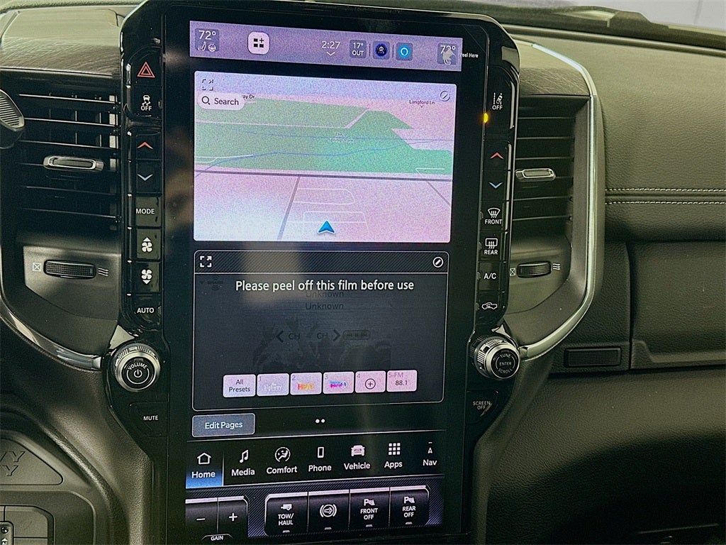 2500 Laramie, 4D Crew Cab, 6.7L I6, 8-Speed Automatic, 4WD, Diamond Black Crystal Pearlcoat, Black Leather, #1 Seat Foam Cushion, 10 Speakers, 115V Auxiliary Rear Power Outlet, 14.4 Touchscreen Display, 17 Speaker Harman/Kardon Premium Sound, 2 Way Rear Headrest Seat, 2nd Row in Floor Storage Bins, 4 Way Front Headrests, 4G LTE Wi-Fi Hot Spot, Active Lane Management System, Adaptive Steering System, Air Conditioning, Alexa Built-in, Anti-Spin Differential Rear Axle, Apple CarPlay, Apple CarPlay/Android Auto, Auto Adjust in Reverse Exterior Mirrors, Auto Dim Exterior Mirror, Auto High Beam Headlamp Control, Auto Power-Folding Mirrors, Auto-Dimming Exterior Passenger Mirror, Auto-dimming Rear-View mirror, Automatic temperature control, Black Exterior Mirrors, Black Exterior Truck Badging, Black Wheel Center Hub, Body Color Grille-Surround, Bucket Seats, Center Stop Lamp with Cargo View Camera, Chrome Exterior Mirrors, Connected Travel and Traffic Services, Connectivity - US/Canada, Delay-off headlights, Disassociated Touchscreen Display, Drowsy Driver Detection, Dual Wireless Charging Pad, Emergency Vehicle Alert System (EVAS), Exterior Mirrors Courtesy Lamps, Exterior Mirrors with Heating Element, Exterior Mirrors with Memory, Exterior Mirrors with Supplemental Signals, Foam Bottle Insert (door Trim Panel), Folding Flat Load Floor Storage, For Details, Visit DriveUconnect.com, For More Info, Call 800-643-2112, Forward and Reverse Utility Lights, Front dual zone A/C, Front fog lights, Front Seat Back Map Pockets, Full Length Upgraded Floor Console, Fully automatic headlights, Global Telematics Box Module, Gloss Black Grille Billets/Accents, Google Android Auto, GPS Antenna Input, GPS Navigation, HD Radio, Heated Front Seats, Heated Steering Wheel, High Back Seats, Illuminated entry, Integrated Voice Command with Bluetooth®, Laramie Level 2 Plus Equipment Group, Leather Trimmed Bucket Seats, LED Bed Lighting, Mirror Running Lights, MOPAR Deployable Bed Step, MOPAR Spray in Bedliner, Navigation System, Night Edition, Off-Road Info Pages, Outside temperature display, ParkView Rear Back-Up Camera, Power 2-Way Driver Lumbar Adjust, Power 2-Way Passenger Lumbar Adjust, Power Adjust 8-Way Driver Seat, Power Adjust 8-Way Front Passenger Seat, Power Adjust Mirrors, Power Adjustable Pedals with Memory, Power Deployable Running Boards, Power driver seat, Power Heated Fold Telescopic Mirrors with Memory, Power Telescoping Mirrors, Power-Adjustable Convex Aux Mirrors, Quick Order Package 24H Laramie, Radio: Uconnect 5 Nav with 14.4 Display, Radio/Driver Seat/Mirrors/Pedals Memory, Rain Sensitive Windshield Wipers, Rear 60/40 Folding Seat, Remote keyless entry, Remote Tailgate Release, Security system, Selectable Tire Fill Alert, SiriusXM Radio Service, SiriusXM with 360L, Sport Performance Hood, Steering wheel mounted audio controls, Traffic Sign Recognition, Trailer Tow Pages, Turn signal indicator mirrors, Ventilated Front Seats, Wheels: 20 x 8.0 Black Painted Aluminum, 4-Wheel Disc Brakes, 5th Wheel/Gooseneck Towing Prep Group, ABS brakes, Alloy wheels, AM/FM radio: SiriusXM with 360L, Brake assist, Bumpers: body-color, Clearance Lamps, Compass, Driver door bin, Driver vanity mirror, Dual front impact airbags, Dual front side impact airbags, Electronic Stability Control, Front anti-roll bar, Front Center Armrest w/Storage, Front License Plate Bracket, Front reading lights, Garage door transmitter, Heated door mirrors, Heated front seats, Heated steering wheel, Leather Trim 40/20/40 Bench Seat, Low tire pressure warning, MOPAR Front and Rear Rubber Floor Mats, Occupant sensing airbag, Overhead airbag, Overhead console, Panic alarm, Passenger door bin, Passenger vanity mirror, Power door mirrors, Power passenger seat, Power steering, Power windows, Radio data system, Radio: Uconnect 5 Navigation with 12.0 Display, Rear anti-roll ba