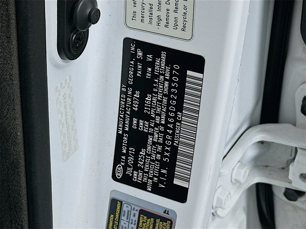 Recent Arrival! 2013 Kia Optima SX 2.0L I4 DGI DOHC Turbocharged 6-Speed Automatic with Sportmatic FWD 4D Sedan Snow White Pearl 22/34 City/Highway MPG Optima SX, Snow White Pearl, Black w/Nappa Leather Seat Trim, 18 x 7.5J Unique Design Chrome Wheels, 4-Way Power Front Passenger Seat, 6 Speakers, Auto-dimming Rear-View mirror, Chrome Accent Rear Spoiler, Chrome Accent Side Sills, Driver Seat Memory, Electronic Parking Brake, Fully automatic headlights, Gloss Black B-Pillar, HD Radio, Heated & Cooled Front Seats, Heated Rear Seats, Infinity Premium Sound System w/8 Speakers, LED Daytime Running Lights, Nappa Leather Seat Trim, Outside temperature display, Panoramic Sunroof, Power Folding Outside Mirrors, Radio: Navigation System w/Rear Camera Display, Radio: UVO Infotainment System w/Rr Camera Display, Red Front & Rear Brake Calipers, Security system, Speed control, Steering wheel mounted audio controls, SX Limited Package, SX Premium Touring Package, SX Technology Package, SXL Rear Badging, Wood Interior Accent, 4-Wheel Disc Brakes, ABS brakes, Air Conditioning, AM/FM radio: SiriusXM, Automatic temperature control, Black Cloth Headliner & Pillar Trim, Brake assist, Bumpers: body-color, Cargo Mat, Cargo Net, Cargo Tray, CD player, Compass, Delay-off headlights, Driver door bin, Driver vanity mirror, Dual front impact airbags, Dual front side impact airbags, Electronic Stability Control, First Aid Kit, Four wheel independent suspension, Front anti-roll bar, Front Bucket Seats, Front Center Armrest, Front dual zone A/C, Front fog lights, Front reading lights, Garage door transmitter: HomeLink, Heated door mirrors, High-Intensity Discharge Headlights, Illuminated entry, Low tire pressure warning, Occupant sensing airbag, Overhead airbag, Overhead console, Panic alarm, Passenger door bin, Passenger vanity mirror, Power door mirrors, Power driver seat, Power steering, Power windows, Radio: AM/FM/CD/MP3 Capacity w/Satellite Audio, Rear anti-roll bar, Rear Bumper Applique, Rear reading lights, Rear seat center armrest, Rear window defroster, Remote keyless entry, Speed-sensing steering, Split folding rear seat, Spoiler, Sport Seat Trim, Tachometer, Telescoping steering wheel, Tilt steering wheel, Traction control, Trip computer, Turn signal indicator mirrors, Variably intermittent wipers, Optima SX, Snow White Pearl, Black w/Nappa Leather Seat Trim, 18 x 7.5J Unique Design Chrome Wheels, 4-Way Power Front Passenger Seat, 6 Speakers, Auto-dimming Rear-View mirror, Chrome Accent Rear Spoiler, Chrome Accent Side Sills, Driver Seat Memory, Electronic Parking Brake, Fully automatic headlights, Gloss Black B-Pillar, HD Radio, Heated & Cooled Front Seats, Heated Rear Seats, Infinity Premium Sound System w/8 Speakers, LED Daytime Running Lights, Nappa Leather Seat Trim, Outside temperature display, Panoramic Sunroof, Power Folding Outside Mirrors, Radio: Navigation System w/Rear Camera Display, Radio: UVO Infotainment System w/Rr Camera Display, Red Front & Rear Brake Calipers, Security system, Speed control, Steering wheel mounted audio controls, SX Limited Package, SX Premium Touring Package, SX Technology Package, SXL Rear Badging, Wood Interior Accent. Hassle free buying with the Auffenberg Honesty policy.Upfront no hassle pricing for everyone!! Come see our awesome selection of Pre Owned Kias at Auffenberg Kia located at the St Clair Automall in Shiloh. Best selection, best prices, best service.Come see why BERG IS THE WORD!! Located at Auffenberg Kia 1155 Berg Blvd Shiloh Illinois 62229.