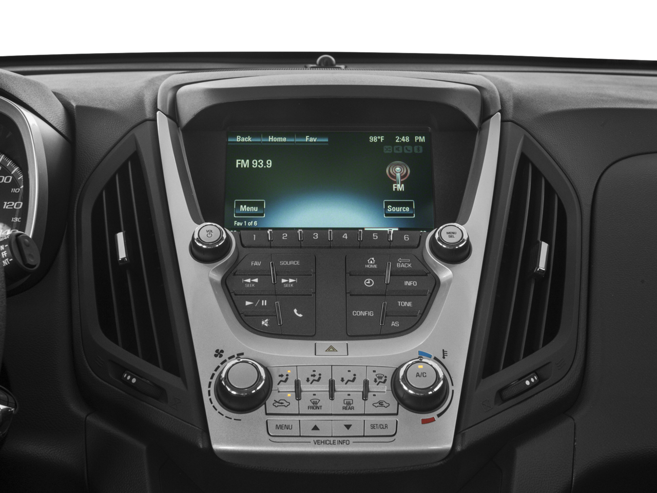 - Console, front center with armrest and concealed storage
