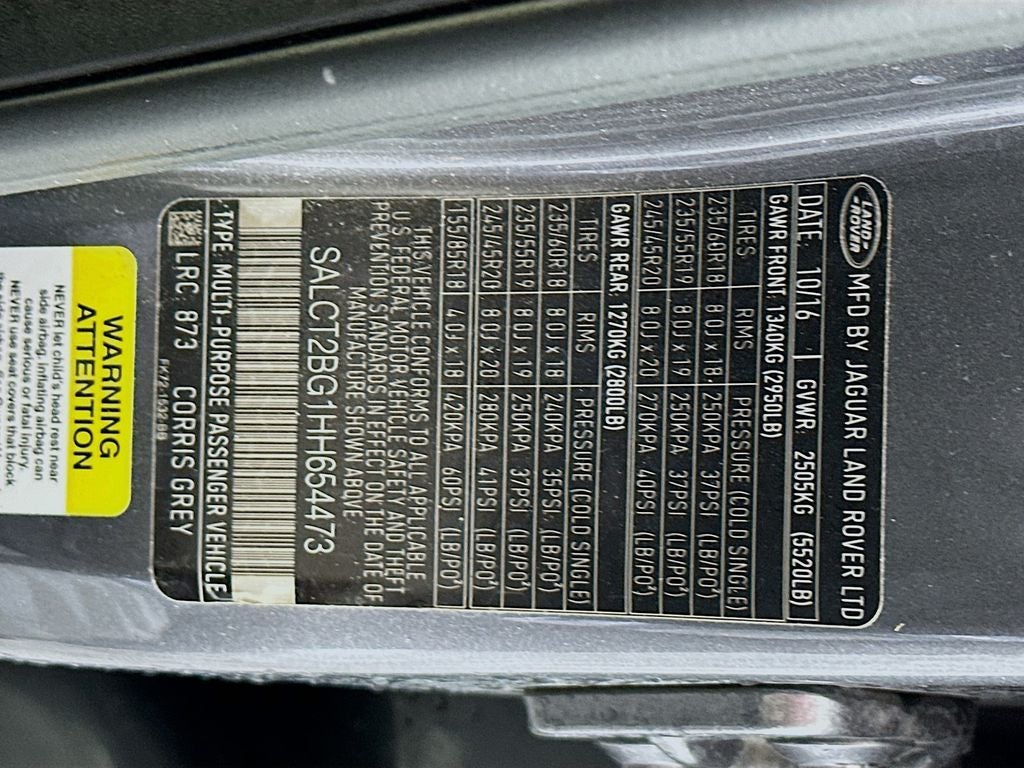 Recent Arrival! Clean CARFAX. 2017 Land Rover Discovery Sport HSE Luxury 2.0L I4 Turbocharged 9-Speed Automatic 4WD 4D Sport Utility Corris Gray Metallic LOCAL TRADE, Discovery Sport HSE Luxury, 4WD, Exterior Parking Camera Rear, Navigation System, Power Liftgate, 10-Way Power Front Seats w/Memory, 11 Speakers, 3.75 Axle Ratio, 4-Wheel Disc Brakes, ABS brakes, Air Conditioning, Alloy wheels, AM/FM radio: SiriusXM, Auto-dimming Rear-View mirror, Automatic temperature control, Brake assist, Bumpers: body-color, Delay-off headlights, Driver door bin, Driver vanity mirror, Dual front impact airbags, Dual front side impact airbags, Electronic Stability Control, Emergency communication system: InControl Protect, Four wheel independent suspension, Front anti-roll bar, Front Bucket Seats, Front Center Armrest, Front dual zone A/C, Front fog lights, Front reading lights, Fully automatic headlights, Garage door transmitter: HomeLink, Headlight cleaning, Heated door mirrors, High intensity discharge headlights: Bi-Xenon, Illuminated entry, Knee airbag, Leather steering wheel, Low tire pressure warning, Memory seat, Occupant sensing airbag, Outside temperature display, Overhead airbag, Panic alarm, Passenger door bin, Passenger vanity mirror, Power door mirrors, Power driver seat, Power passenger seat, Power steering, Power windows, Radio data system, Radio: 250W Meridian Audio System w/11 Speakers, Rain sensing wipers, Rear anti-roll bar, Rear fog lights, Rear reading lights, Rear seat center armrest, Rear window defroster, Rear window wiper, Remote keyless entry, SD Card Navigation, Security system, SiriusXM Satellite & HD Radio, Speed control, Speed-sensing steering, Speed-Sensitive Wipers, Split folding rear seat, Spoiler, Steering wheel mounted audio controls, Tachometer, Telescoping steering wheel, Tilt steering wheel, Traction control, Trip computer, Turn signal indicator mirrors, Variably intermittent wipers, Wheels: 19 9 Spoke Alloy (Style 902), Windsor Leather Seat Trim, Discovery Sport HSE Luxury, 4WD, Exterior Parking Camera Rear, Navigation System, Power Liftgate. Hassle free buying with the Auffenberg Honesty policy.Upfront no hassle pricing for everyone!! Come see our awesome selection of Pre Owned Kias at Auffenberg Kia located at the St Clair Automall in Shiloh. Best selection, best prices, best service.Come see why BERG IS THE WORD!! Located at Auffenberg Kia 1155 Berg Blvd Shiloh Illinois 62229.
