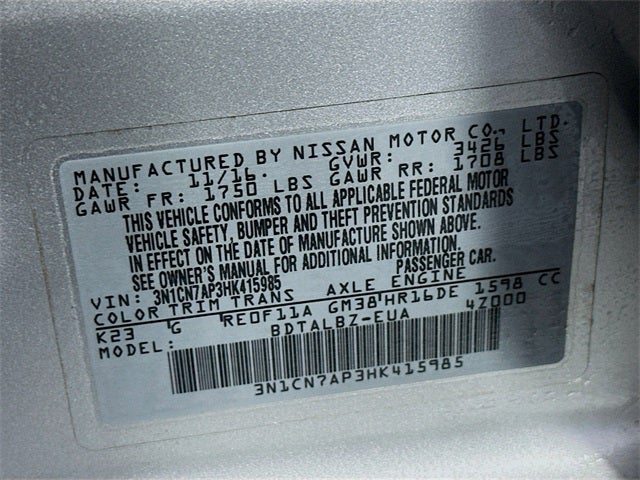 Brilliant Silver Metallic FWD CVT with Xtronic 1.6L I4 DOHC 16V 15 Steel Wheels w/Full Wheel Covers.