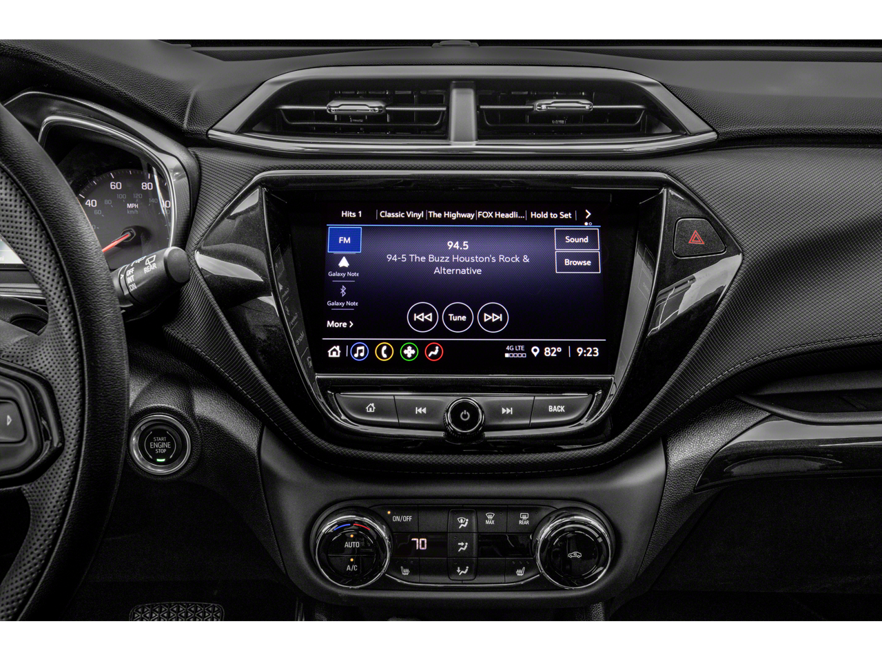 - Audio system, Chevrolet Infotainment 3 system 7" diagonal color touchscreen, AM/FM stereo. Additional features for compatible phones include: Bluetooth® audio streaming for 2 active devices, voice command pass-through to phone, Apple CarPlay and Android Auto capable.