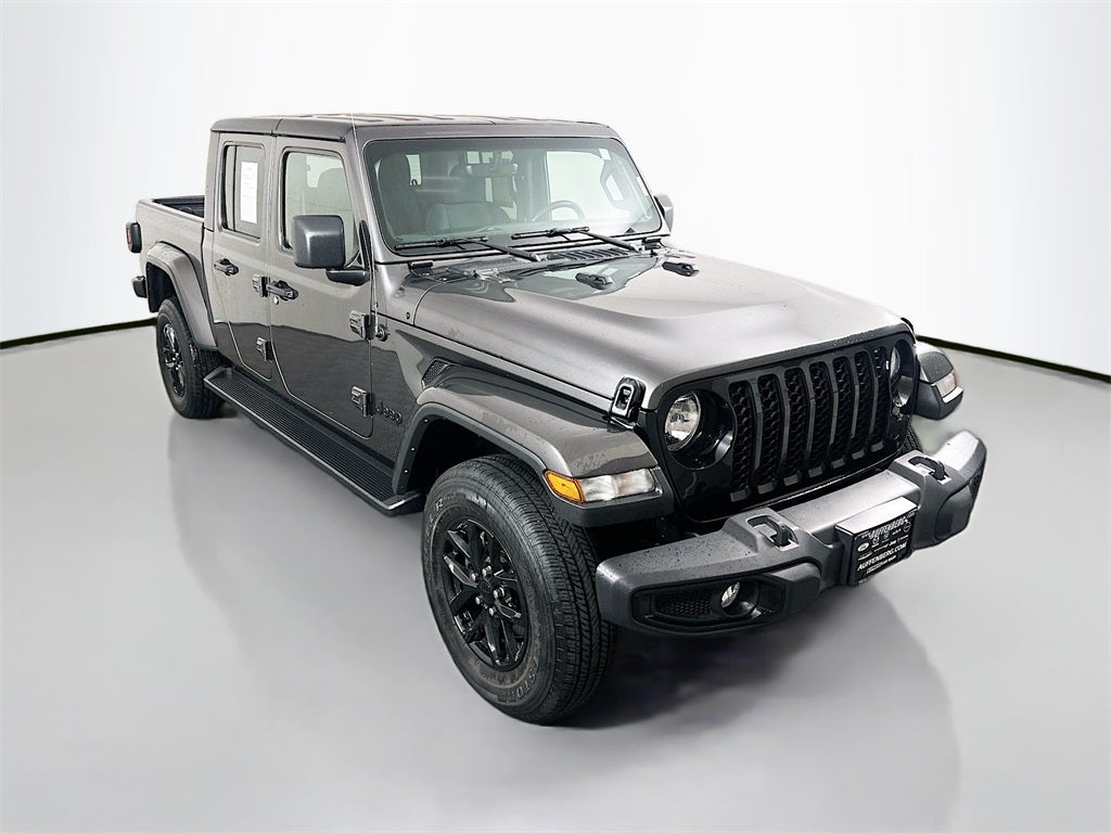 CARFAX One-Owner. Clean CARFAX. 2022 Jeep Gladiator Altitude 3.6L V6 24V VVT 8-Speed Automatic 4WD 4D Crew Cab Granite Crystal Metallic Clearcoat Gladiator Altitude, 4D Crew Cab, 3.6L V6 24V VVT, 4WD, Granite Crystal Metallic Clearcoat, Black w/Cloth Low-Back Bucket Seats or Leather Trimmed Bucket Seats, 1-Year SiriusXM Guardian Trial, 110 MPH Vehicle Max Speed Calibration, 115V Auxiliary Power Outlet, 2-Door Passive Entry, Front Door Locks, 220 Amp Alternator, 240 Amp Alternator, 400W Inverter, 5-Year SiriusXM Traffic Service, 5-Year SiriusXM Travel Link Service, 8.4 Radio & Premium Audio Group, 8.4 Touchscreen Display, Air Conditioning w/Auto Temperature Control, Alpine Premium Audio System, Altitude Package, Apple CarPlay, Auto-Dimming Rear-View Mirror, Automatic Headlamps, Black 3-Piece Hard Top, Black Grille, Body Color Fender Flares (2-Piece), Class IV Receiver Hitch, Cluster 7.0 TFT Color Display, Cold Weather Group, Console Bin Task Light, Convenience Group, Daytime Running Lamp System, Deep Tint Sunscreen Windows, Emergency/Assistance Call, For Details, Visit DriveUconnect.com, For More Info, Call 800-643-2112, Freedom Panel Storage Bag, Front 1-Touch Down Power Windows, Gloss Black Instrument Panel Bezels, Google Android Auto, GPS Antenna Input, GPS Navigation, HD Radio, Heated Front Seats, Heated Steering Wheel, Heavy-Duty Engine Cooling, Integrated Center Stack Radio, Integrated Voice Command w/Bluetooth®, Leather Wrapped Steering Wheel, Media Hub w/2 Charge Only USBs, Mold In Color Bumper w/Gloss Black, Normal Duty Plus Suspension, Off-Road Info Pages, Power Heated Mirrors, Power Tailgate Lock, Quick Order Package 24T Altitude, Radio: Uconnect 4C Nav w/8.4 Display, Rear Sliding Window, Rear Window Defroster, Remote Keyless Entry, Security Alarm, SiriusXM Radio Service, SiriusXM Satellite Radio, SiriusXM Traffic Plus, SiriusXM Travel Link, Speed Sensitive Power Locks, Sun Visors w/Illuminated Vanity Mirrors, Technology Group, Trailer Hitch Zoom, Trailer Tow Package, Universal Garage Door Opener, USB Host Flip, Wheels: 17 x 7.5 Gloss Black Aluminum, 3.73 Rear Axle Ratio, 4-Wheel Disc Brakes, 8 Speakers, ABS brakes, Air Conditioning, AM/FM radio, Anti-Spin Differential Rear Axle, Apple CarPlay/Android Auto, Brake assist, Cloth Low-Back Bucket Seats, Compass, Delay-off headlights, Driver door bin, Driver vanity mirror, Dual front impact airbags, Dual front side impact airbags, Electronic Stability Control, Emergency communication system: SiriusXM Guardian, Front anti-roll bar, Front Bucket Seats, Front Center Armrest w/Storage, Front fog lights, Front reading lights, Integrated roll-over protection, Low tire pressure warning, MOPAR All-Weather Slush Mats, Normal Duty Suspension, Occupant sensing airbag, Outside temperature display, ParkView Rear Back-Up Camera, Passenger door bin, Passenger vanity mirror, Power steering, Radio data system, Radio: Uconnect 4 w/7 Display, Rear anti-roll bar, Rear reading lights, Speed control, Split folding rear seat, Steering wheel mounted audio controls, Tachometer, Telescoping steering wheel, Tilt steering wheel, Traction control, Trip computer, Variably intermittent wipers, Wheels: 17 x 7.5 Black Steel Styled, Gladiator Altitude, 4D Crew Cab, 3.6L V6 24V VVT, 4WD, Granite Crystal Metallic Clearcoat, Black w/Cloth Low-Back Bucket Seats or Leather Trimmed Bucket Seats, 1-Year SiriusXM Guardian Trial, 110 MPH Vehicle Max Speed Calibration, 115V Auxiliary Power Outlet, 2-Door Passive Entry, Front Door Locks, 220 Amp Alternator, 240 Amp Alternator, 400W Inverter, 5-Year SiriusXM Traffic Service, 5-Year SiriusXM Travel Link Service, 8.4 Radio & Premium Audio Group, 8.4 Touchscreen Display, Air Conditioning w/Auto Temperature Control, Alpine Premium Audio System, Altitude Package, Apple CarPlay, Auto-Dimming Rear-View Mirror, Automatic Headlamps, Black 3-Piece Hard Top, Black Grille, Body Color Fender Flares (2-Piece), Class IV Receiver Hitch, Cluster 7.0 TFT Color Display, Cold