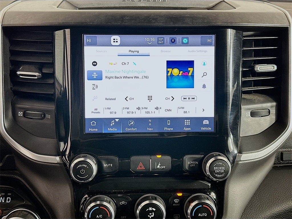CARFAX One-Owner. 2022 Ram 1500 Big Horn/Lone Star HEMI 5.7L V8 Multi Displacement VVT 8-Speed Automatic 4WD 4D Crew Cab Diamond Black Crystal Pearlcoat 1500 Big Horn/Lone Star, 4D Crew Cab, HEMI 5.7L V8 Multi Displacement VVT, 4WD, Diamond Black Crystal Pearlcoat, Black w/Cloth 40/20/40 Bench Seat or Cloth 40/20/40 Bench Seat, 2nd Row In Floor Storage Bins, 3 Rear Seat Head Restraints, 4 Way Front Headrests, 4G LTE Wi-Fi Hot Spot, 8.4 Touchscreen Display, Advanced Brake Assist, All Plant-Installed Decals, Apple CarPlay, Auto-Dimming Exterior Driver Mirror, Auto-Dimming Rear-View Mirror, Big Horn Badge, Big Horn Level 1 Equipment Group, Black Exterior Mirrors, Black Interior Accents, Black Premium Power Mirrors, Bluetooth® Handsfree Phone & Audio, Body Color Exterior Mirrors, Body Color Front Bumper, Body Color Premium Power Mirrors, Body Color Rear Bumper w/Step Pads, Bridgestone Brand Tires, Bucket Seats, Class IV Receiver Hitch, Cluster 3.5 TFT Color Display, Connectivity - US/Canada, Convex Wide-Angle Mirror Insert, Delete LED Lamp - Floor Console Bin, Deluxe Cloth Bucket Seats, Exterior Mirrors Courtesy Lamps, Exterior Mirrors w/Heating Element, Exterior Mirrors w/Supplemental Signals, For Details, Visit DriveUconnect.com, Front Seat Back Map Pockets, Full Length Floor Console, Full Speed Forward Collision Warning Plus, Global Telematics Box Module (TBM), Glove Box Lamp, Google Android Auto, GPS Antenna Input, Integrated Center Stack Radio, Lane Keep Assist, Level 1 Safety Group, Manual Adjust 4-Way Front Passenger Seat, Pedestrian Emergency Braking, Power 2-Way Driver Lumbar Adjust, Power 8-Way Driver Seat, Power Adjustable Pedals, Power-Folding Mirrors, Quick Order Package 27Z Big Horn, Radio: Uconnect 5 W w/8.4 Display, Rear 60/40 Folding Seat, Rear Center Armrest, Rear Dome w/On/Off Switch Lamp, Rear Power Sliding Window, Rear Window Defroster, SiriusXM Radio Service, SiriusXM Satellite Radio, Sport Appearance Package, Sport Decal, Sun Visors w/Illuminated Vanity Mirrors, Universal Garage Door Opener, USB Host Flip, Wheels: 20 x 9 Aluminum Chrome Clad (WRK), 3.21 Rear Axle Ratio, 4-Wheel Disc Brakes, 48V Belt Starter Generator, 6 Speakers, ABS brakes, Air Conditioning, Air Conditioning ATC w/Dual Zone Control, All R1 High Radios, All Radio Equipped Vehicles, Alloy wheels, AM/FM radio, Brake assist, Bumpers: chrome, Cloth Bench Seat, Cluster 7.0 TFT Color Display, Compass, Delay-off headlights, Disassociated Touchscreen Display, Driver door bin, Dual front impact airbags, Dual front side impact airbags, Electronic Stability Control, Emergency communication system: SiriusXM Guardian, Front anti-roll bar, Front Center Armrest w/Storage, Front fog lights, Front reading lights, Front wheel independent suspension, Fully automatic headlights, HD Radio, Heated door mirrors, Illuminated entry, Integrated Voice Command w/Bluetooth®, Leather steering wheel, Low tire pressure warning, Manufacturer's Statement of Origin, MOPAR Front & Rear Rubber Floor Mats, Occupant sensing airbag, Outside temperature display, Overhead airbag, Overhead console, Panic alarm, ParkView Rear Back-Up Camera, Passenger door bin, Passenger vanity mirror, Power door mirrors, Power steering, Power windows, Radio data system, Radio: Uconnect 3 w/5 Display, Radio: Uconnect 5 Nav w/8.4 Display, Rear anti-roll bar, Rear seat center armrest, Rear step bumper, Remote keyless entry, Remote Start System, Speed control, Split folding rear seat, Steering wheel mounted audio controls, Tachometer, Telescoping steering wheel, Tilt steering wheel, Traction control, Trip computer, Variably intermittent wipers, Voltmeter, Wheels: 18 x 8 Cast-Aluminum Painted, 1500 Big Horn/Lone Star, 4D Crew Cab, HEMI 5.7L V8 Multi Displacement VVT, 4WD, Diamond Black Crystal Pearlcoat, Black w/Cloth 40/20/40 Bench Seat or Cloth 40/20/40 Bench Seat, 2nd Row In Floor Storage Bins, 3 Rear Seat Head Restraints, 4 Way Front Headrests, 4G LTE Wi-Fi Hot Spot, 8.4 Touchscreen Display,