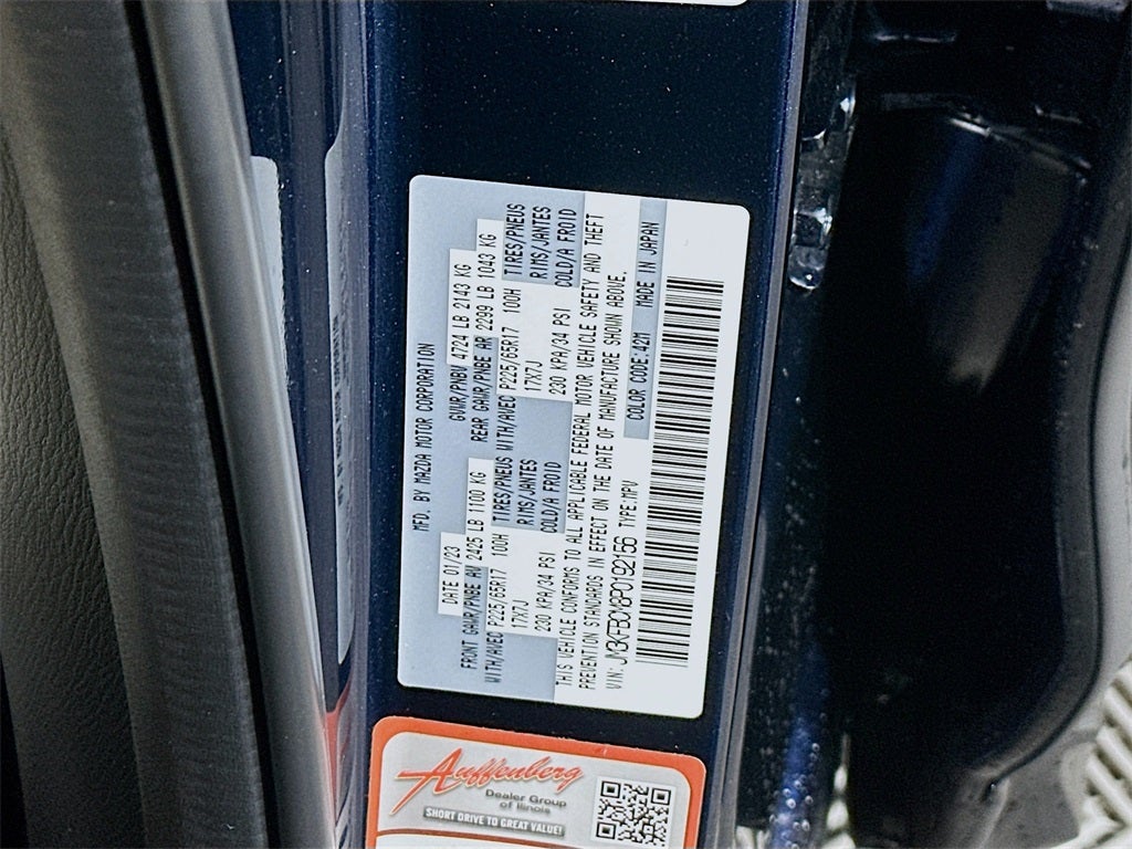 Certified. CARFAX One-Owner. Clean CARFAX. 2023 Mazda CX-5 2.5 S Preferred Package SKYACTIV® 2.5L 4-Cylinder DOHC 16V 6-Speed Automatic AWD 4D Sport Utility Deep Crystal Blue Mica 24/30 City/Highway MPG CX-5 2.5 S Preferred Package, Mazda Certified Pre-Owned Certified, AWD, Deep Crystal Blue Mica, 4-Wheel Disc Brakes, 4.624 Axle Ratio, 6 Speakers, ABS brakes, Air Conditioning, Alloy wheels, AM/FM radio, AppLink/Apple CarPlay and Android Auto, Auto High-beam Headlights, Auto-dimming Rear-View mirror, Automatic temperature control, Brake assist, Bumpers: body-color, Delay-off headlights, Driver door bin, Driver vanity mirror, Dual front impact airbags, Dual front side impact airbags, E911 Automatic Emergency Notification, Electronic Stability Control, Emergency communication system: MAZDA CONNECT, Exterior Parking Camera Rear, Four wheel independent suspension, Front anti-roll bar, Front Bucket Seats, Front Center Armrest w/Storage, Front dual zone A/C, Front reading lights, Fully automatic headlights, Garage door transmitter: HomeLink, Heated Front Bucket Seats, Heated front seats, Illuminated entry, Infotainment System Voice Command, Leather Seat Trim, Leather Shift Knob, Low tire pressure warning, Memory seat, Multifunction Commander Control, Occupant sensing airbag, Outside temperature display, Overhead airbag, Overhead console, Pandora, Panic alarm, Passenger door bin, Passenger vanity mirror, Power door mirrors, Power driver seat, Power Liftgate, Power moonroof, Power passenger seat, Power steering, Power windows, Radio Broadcast Data System Program Information, Radio data system, Radio: AM/FM/HD Audio System, Rain sensing wipers, Rear anti-roll bar, Rear reading lights, Rear seat center armrest, Rear window defroster, Rear window wiper, Remote keyless entry, Retractable Cargo Cover, SMS Text Msg Audio Delivery & Reply, Speed control, Speed-sensing steering, Split folding rear seat, Spoiler, Steering wheel mounted audio controls, Tachometer, Telescoping steering wheel, Tilt steering wheel, Traction control, Trip computer, Turn signal indicator mirrors, Variably intermittent wipers, Wheels: 17 x 7J Aluminum Alloy, CX-5 2.5 S Preferred Package, AWD, Deep Crystal Blue Mica. Mazda Certified Pre-Owned Details:
